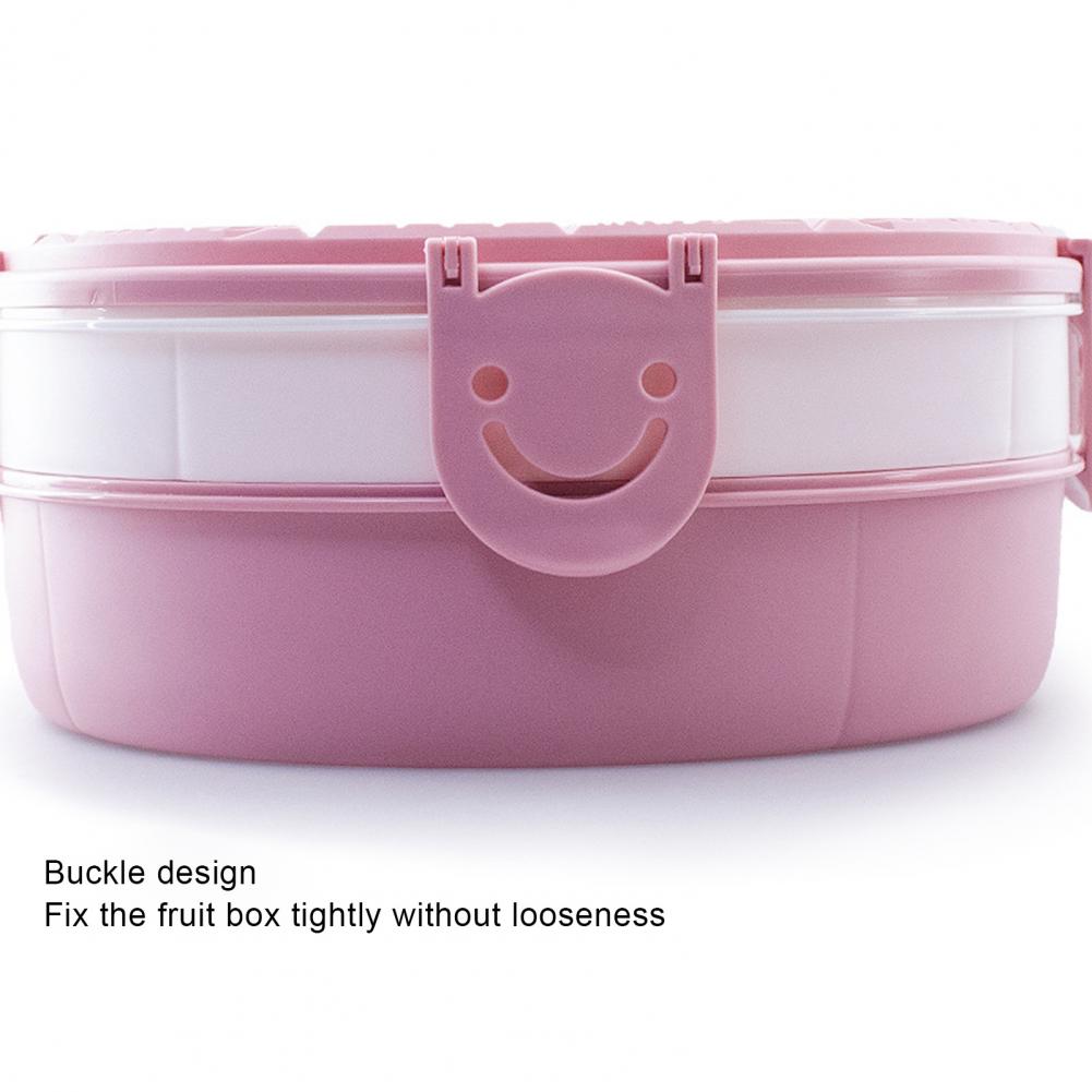 Пыленепроницаемый, этот фруктовый лоток предотвращает смешивание пищи, потому что он имеет крышку и пряжку, которая уплотняет плотно.