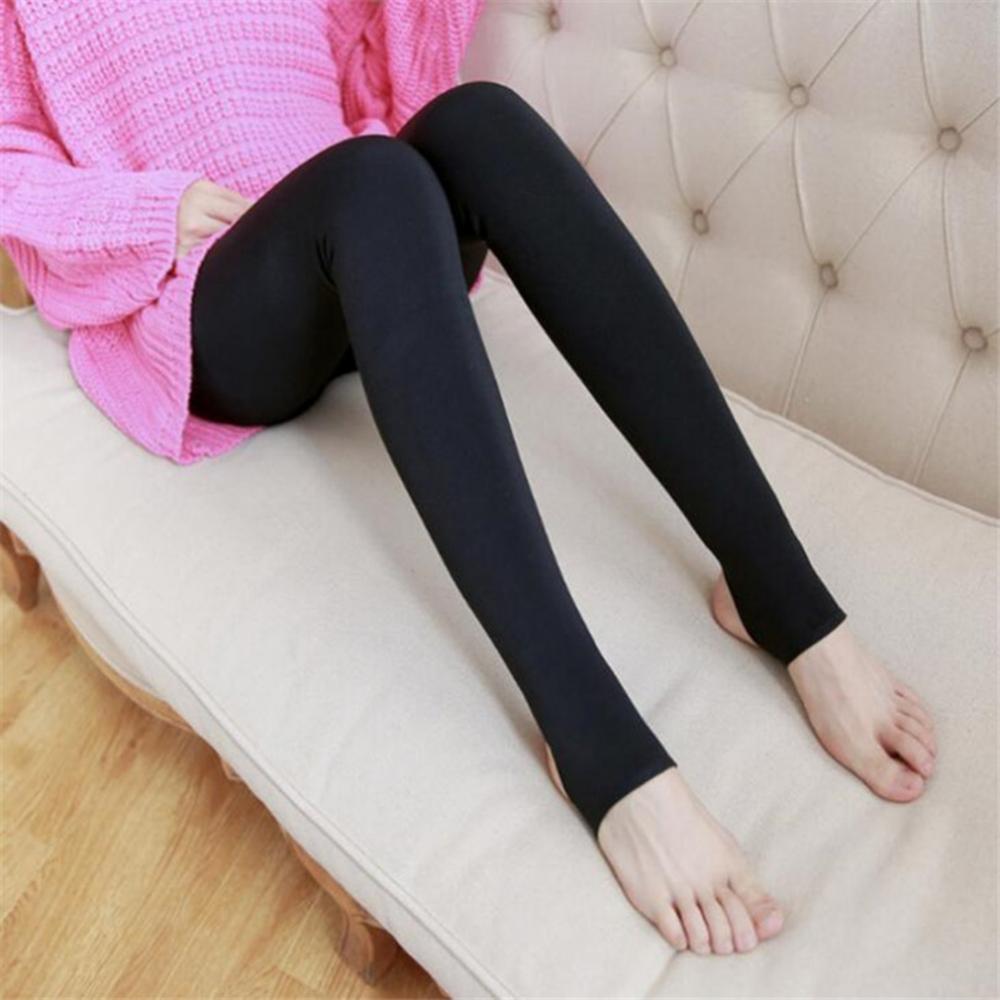 Женские осенние Однотонные эластичные флисовые теплые укороченные Леггинсы со стрепками
