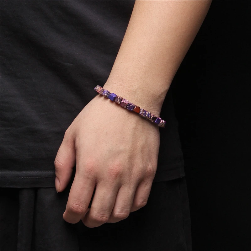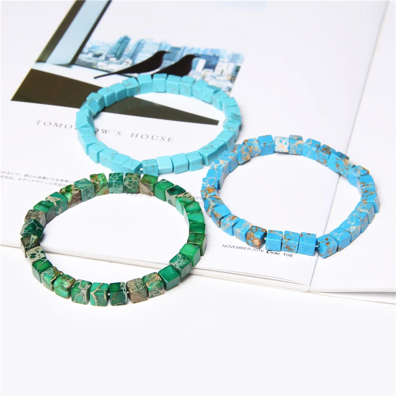 6*6 мм квадратные каменные бусы браслеты для женщин 2020 новый дизайн ручной работы эластичные Украшения отполированный имперский Jaspe браслет мужской браслет