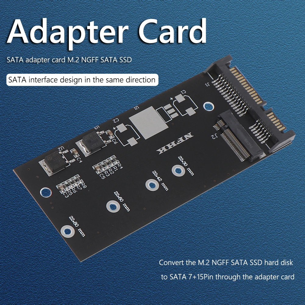 Превратите жесткий диск M.2 NGFF SATA SSD в SATA 7 + 15pin (i.e., интерфейс SATA 3.5 жесткого диска) через адаптерную карту. Эта карта адаптера не подходит для ноутбука, и она, как правило, легко устанавливается и фиксируется на шасси и жестком диске рабочего стола.