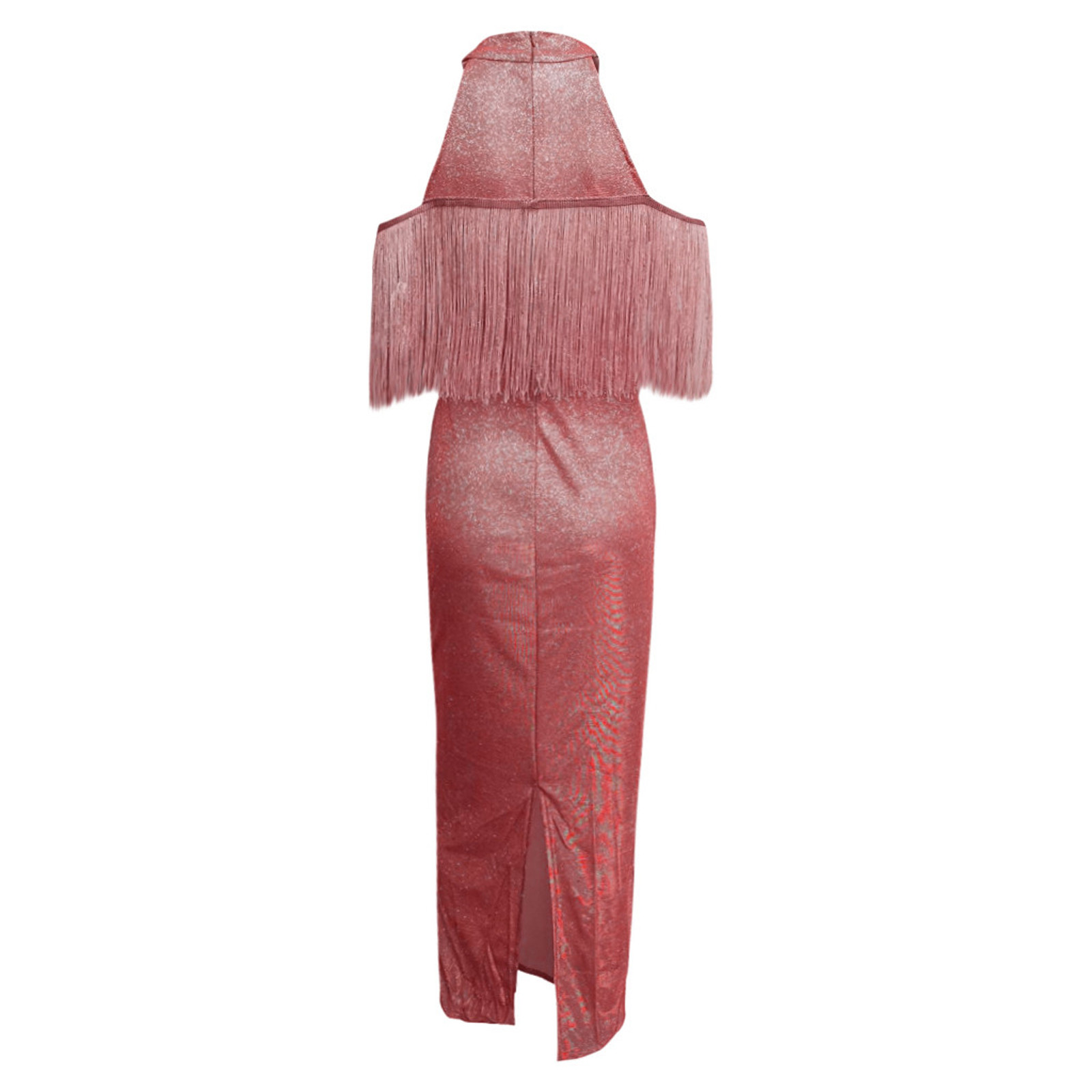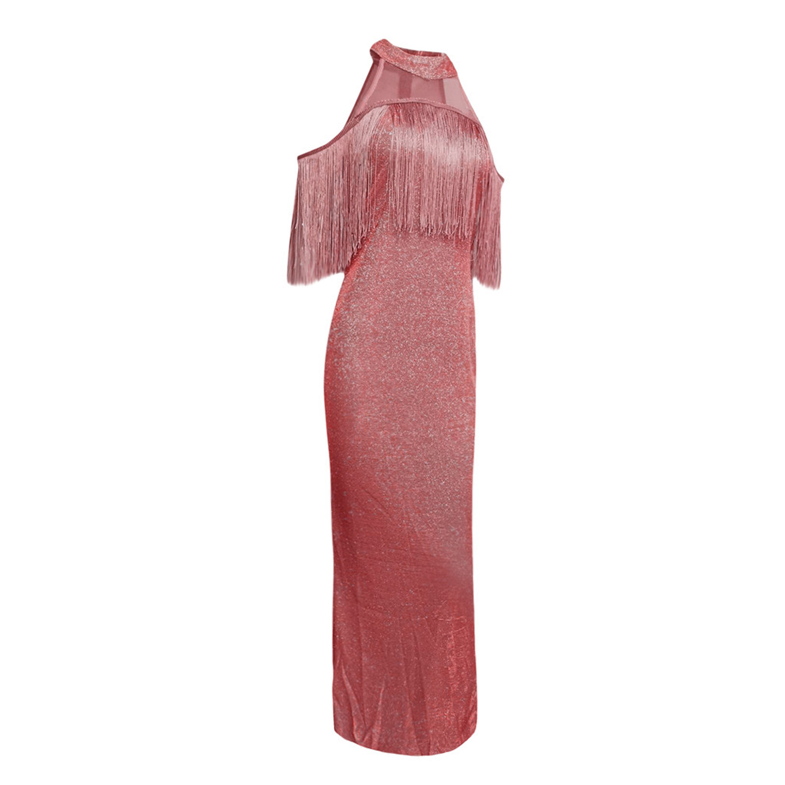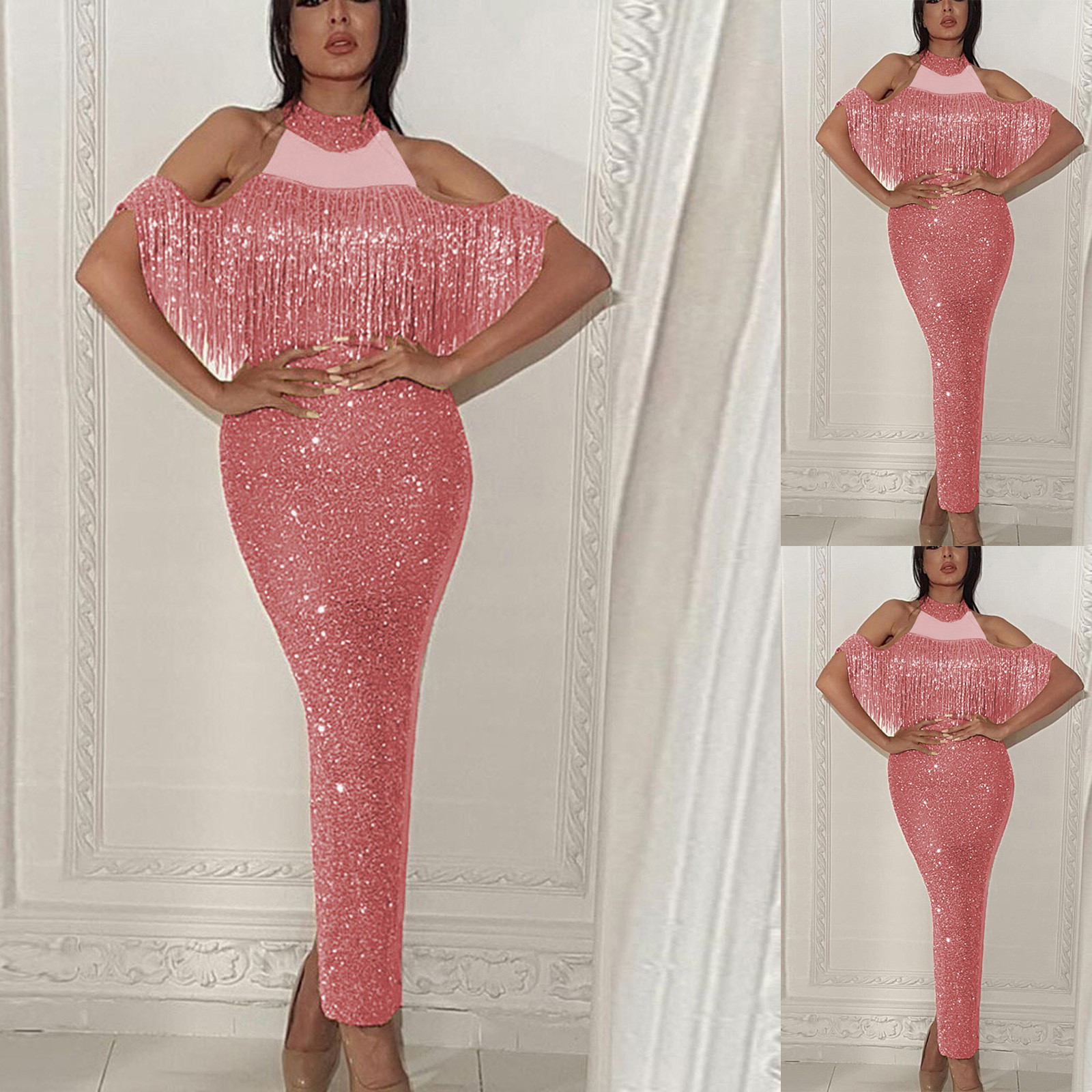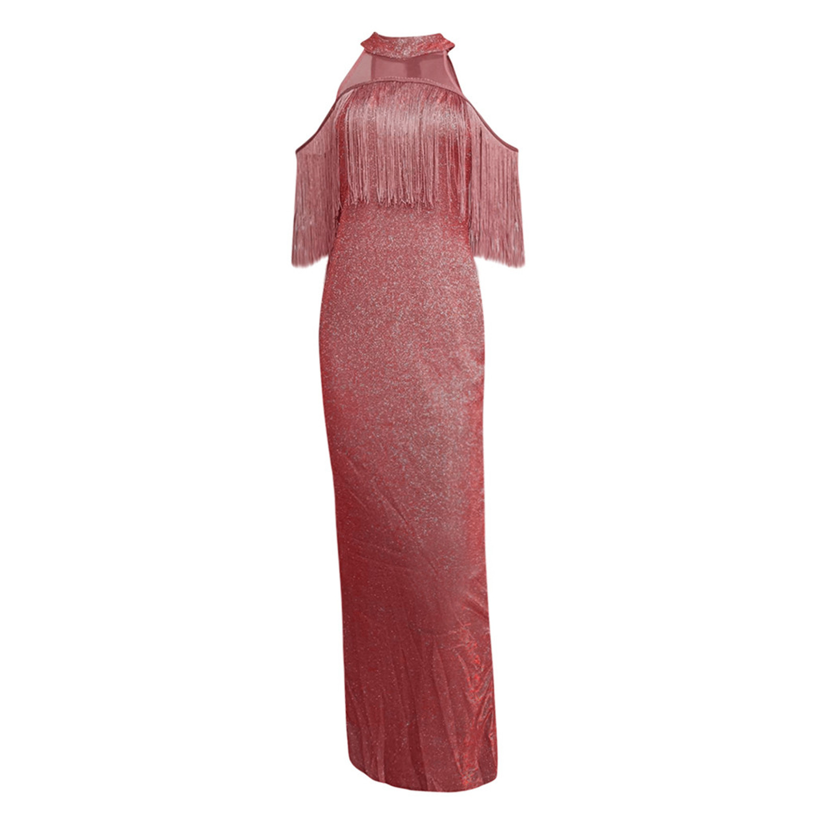 Женское Сексуальное Лоскутное блестящее Сетчатое вечернее платье с кисточками и разрезом