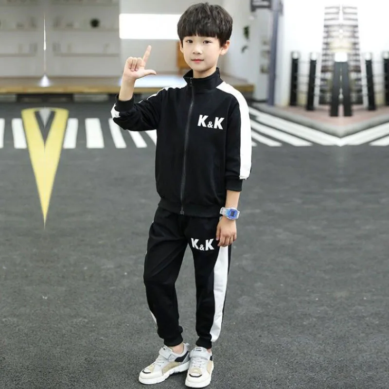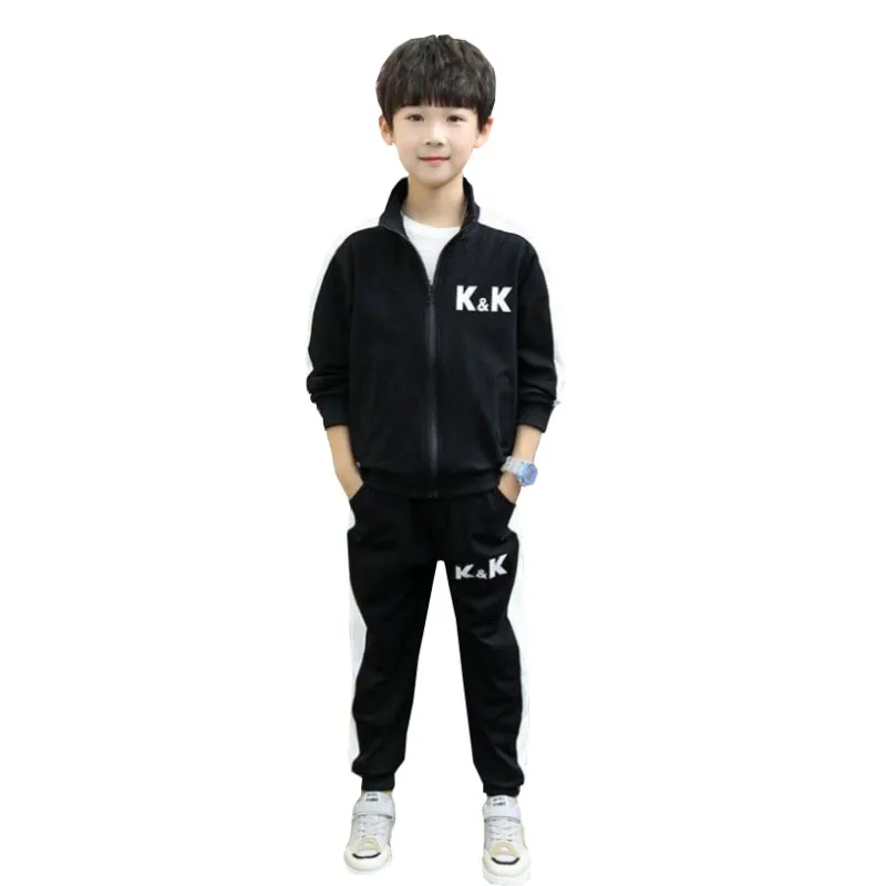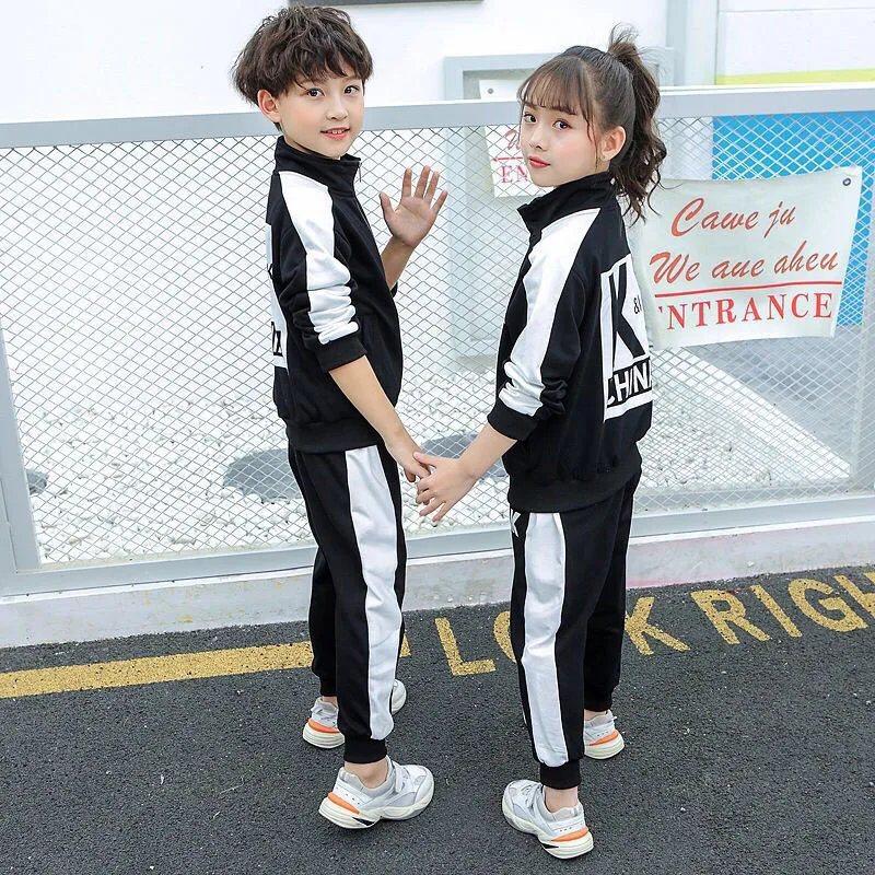 Комплект одежды для детей, модный универсальный повседневный спортивный свитер с буквенным принтом, куртки + штаны качественная одежда для мальчиков и девочек от 4 до 10 лет