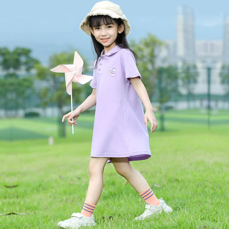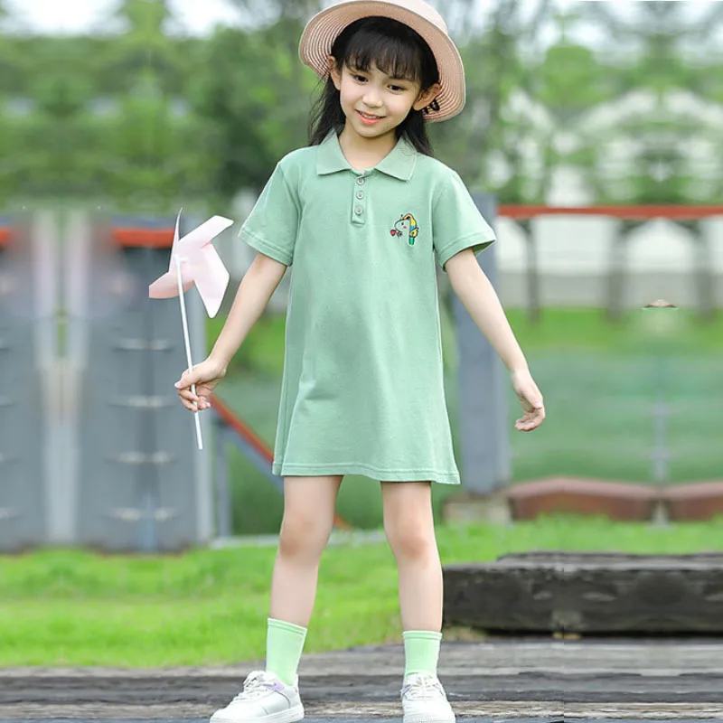 Платье для девочек; Милое платье с вышитыми героями мультфильмов в стиле кампуса; Студенческая одежда для активного отдыха; Качественная детская одежда