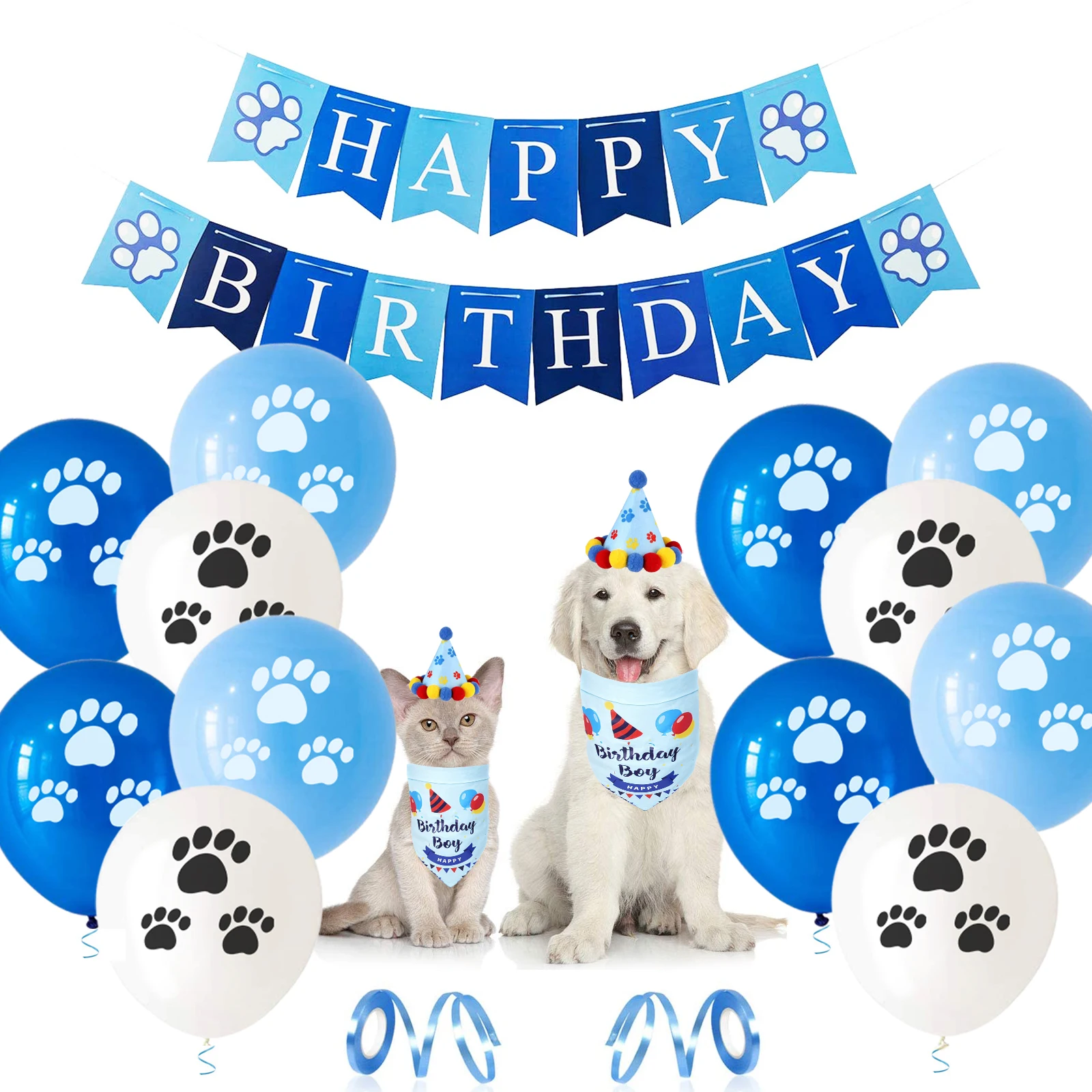 17 шт./компл. украшения для вечеринки в честь Дня Рождения собаки кошки голубые розовые воздушные шары с рисунком лапы костюм щенка шапка шарф бандана аксессуары для домашних животных