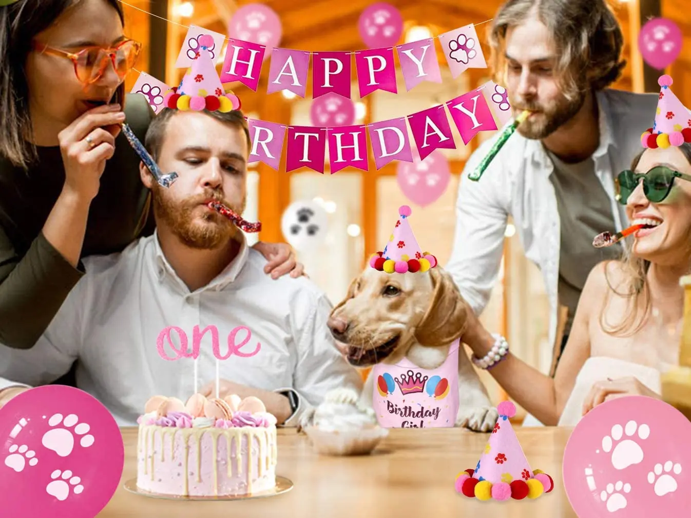 1 шапка для дня рождения с принтом розовой/синей лапы