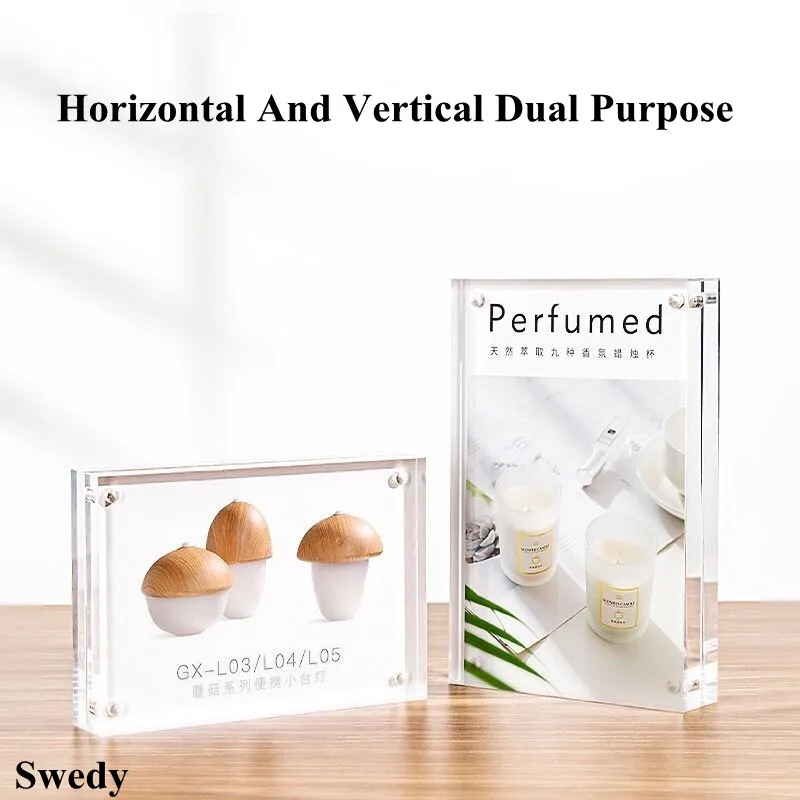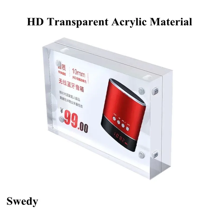 Информация о продукте:Название продукта: магнитный акриловый блок фоторамка настольная бескаркасная фотография дисплей держатель знак стенд цена держатель теговБренд: SwedyМатериал: акрил + МагнитныйFeture: переработанный, экологически чистыйРазмер внутренней бумаги: 82x55 мм/90x60 мм/100x70 мм/120x80 мм/100x100 мм опциональноТолщина акриловой панели: 10 мм + 10 ммПрименение: ресторан, супермаркет, отель, ресторан, встреча, офис, выставка, функциональный дисплей, рекламный дисплей, дисплей обслуживания, рекламный дисплей, дисплей цены, любое место, которое вы хотите показать знак.