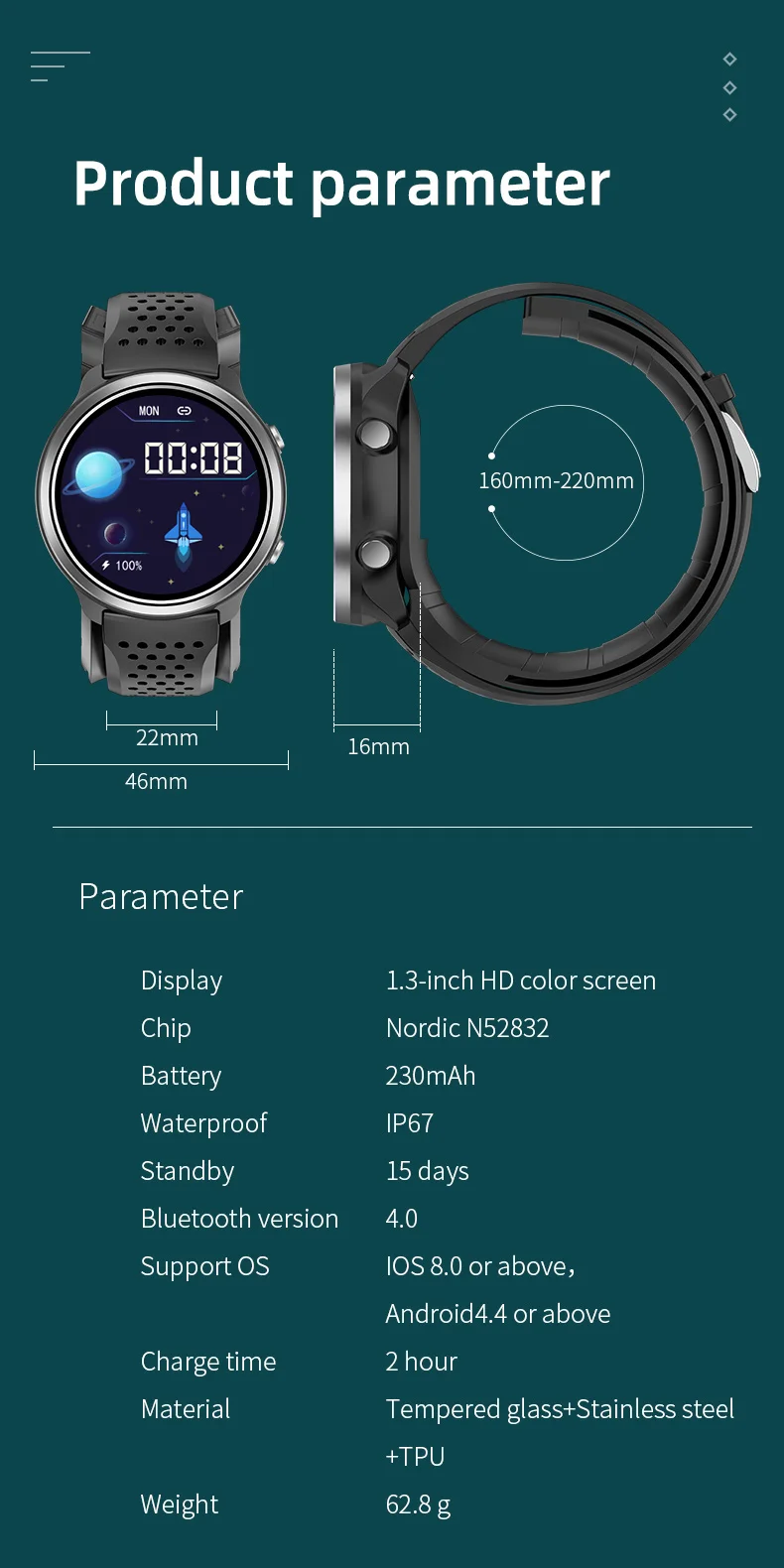 Дисплей экран: 1,3 дюймов полный круг Полный сенсорный экран,