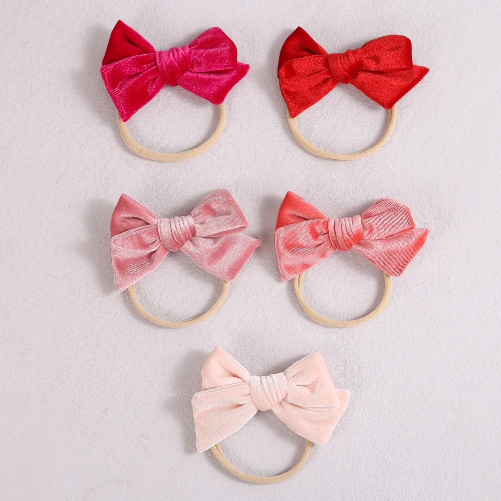 Нейлоновые повязки для новорожденных, Детские эластичные повязки для волос, для девочек, 4 дюйма, обтягивающие бархатные банты, аксессуары для волос, для фотосъемки младенцев