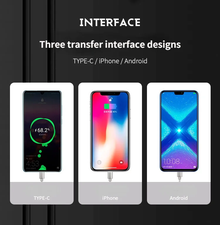 Интерфейс зарядки: интерфейс USB, интерфейс Apple, Интерфейс Android, интерфейс type-c