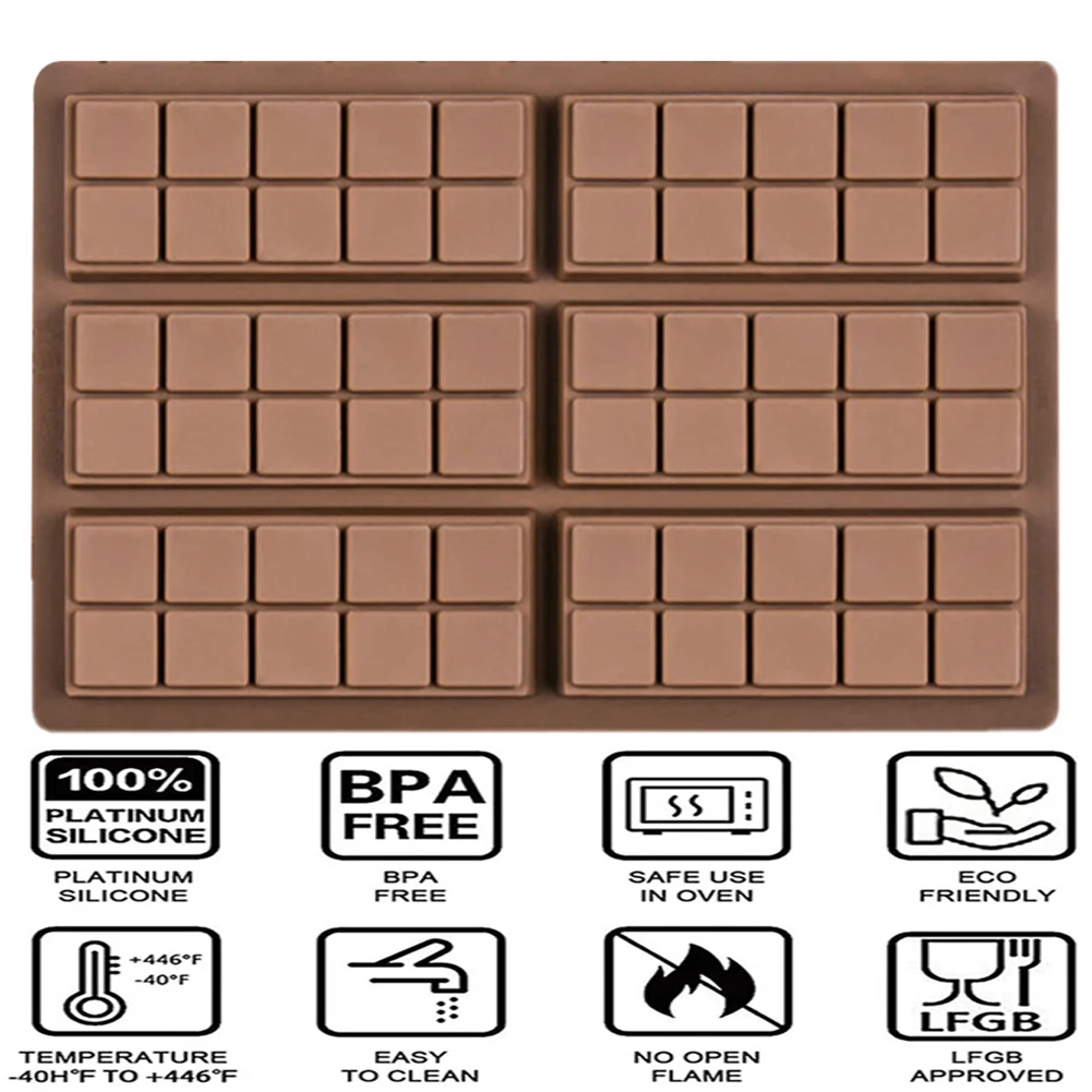 Коричневый 10 ячеек 6 секций Шоколадный Бар 27 г конфеты Профессиональный пищевой силиконовый Плесень Для Кухни