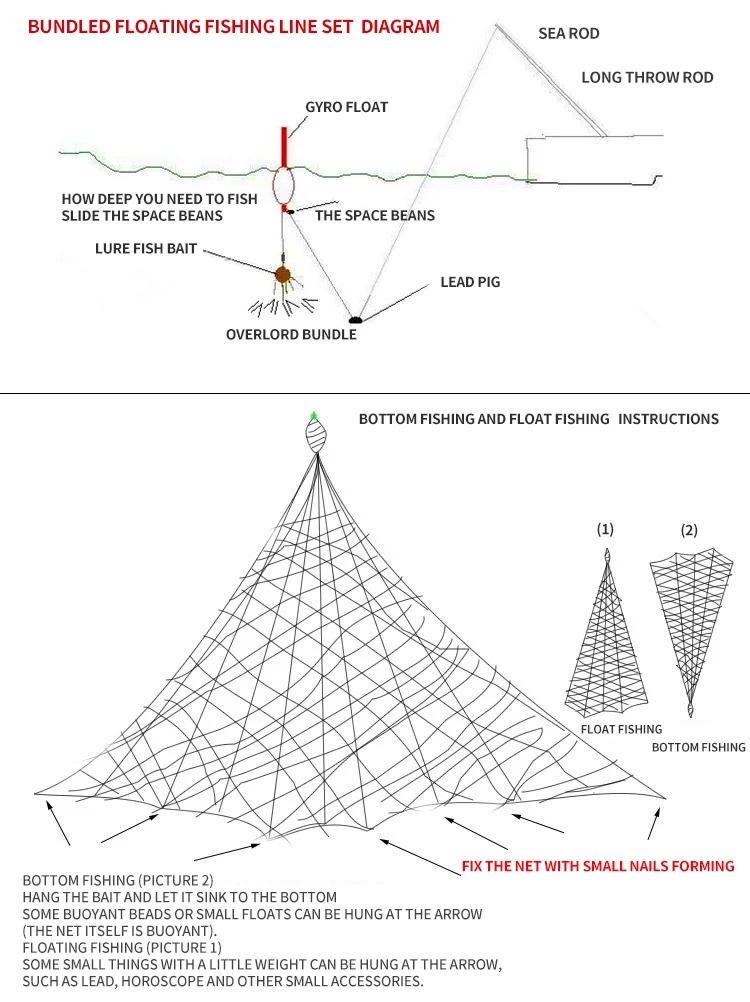 Плавающая Рыбалка: метод связывания лески в комплекте такой же, как у Серебряного карпа и рыболовного набора bighead (вы можете поймать плавающую воду, заменив водное привидение или взрывоопасную часть крючка на overlord комплект) В основном белые полоски, приподнятый рот и другие пелагические рыбы