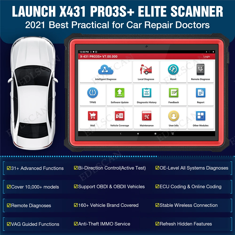 2021 новый Элитный Версия LAUNCH X431 PRO3 S + профессиональная инструменту диагностики, 10,1 дюймов Android 9,0 системы, эбукодирования одинаковая верхняя одежда для мамы, испытание возбуждения, функция направляющего выступа для BMW/ Benz, ОЗУ 3 ГБ + ПЗУ 32 Гб (может увеличиться до 128 ГБ), работа с X431 HDIII сверхмощный модуль может протестировать как автомобили 12 В, так и грузовики 24 В (включая бензин и дизель)