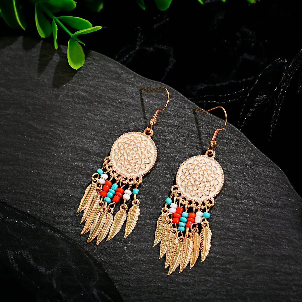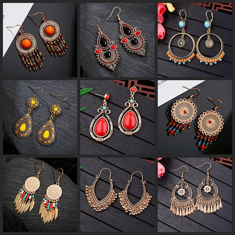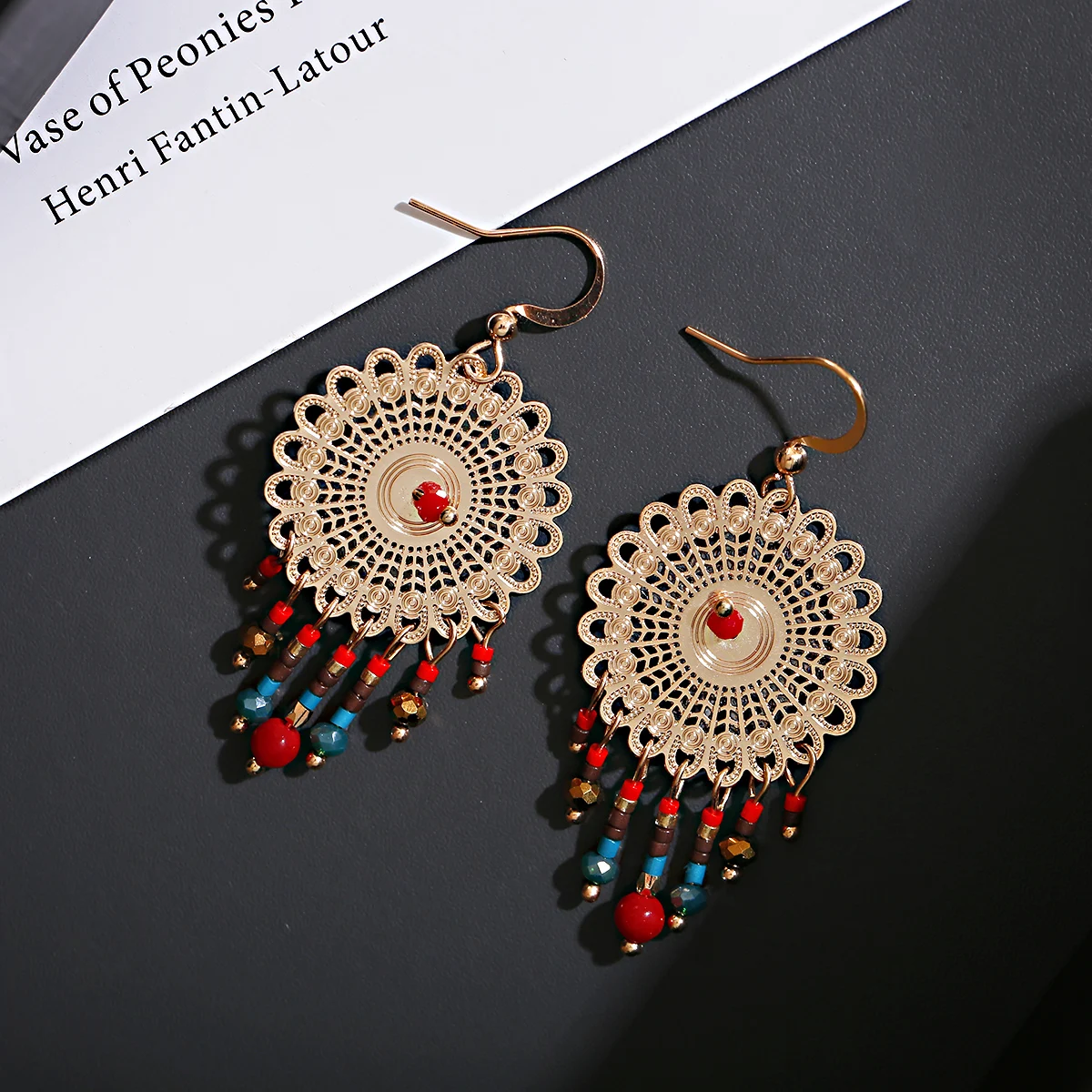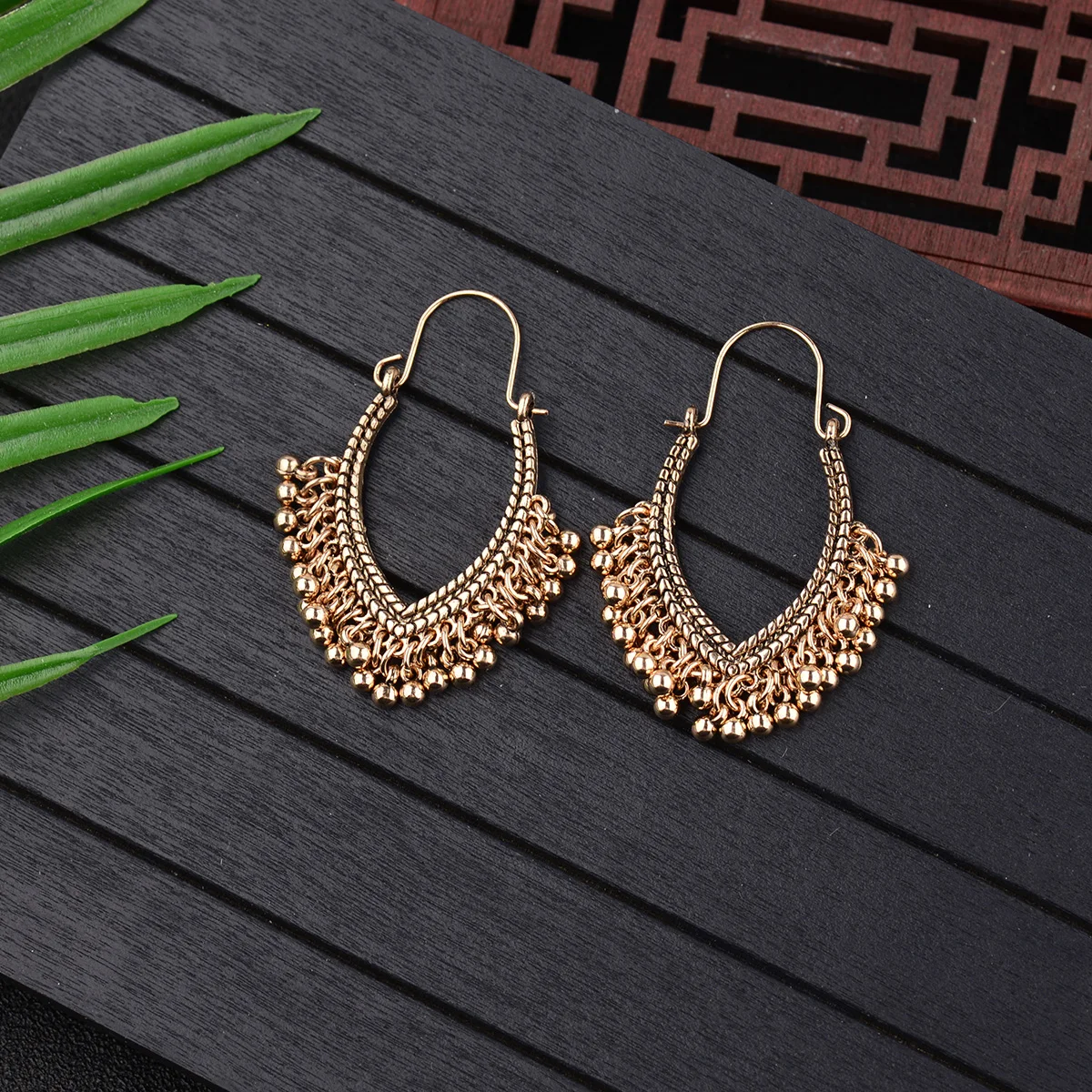 Этнические геометрические серьги золотого цвета индийские серьги ювелирные изделия винтажные Красные Каменные Бусы массивные серьги для женщин богемные серьги