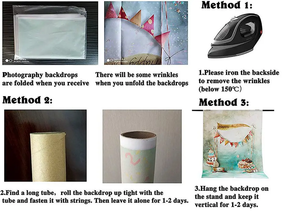 Все фоны будут отправлены в сложенном виде (из-за политики почтового отделения в отношении размера доставки). Если ваш фон имеет небольшую складку,