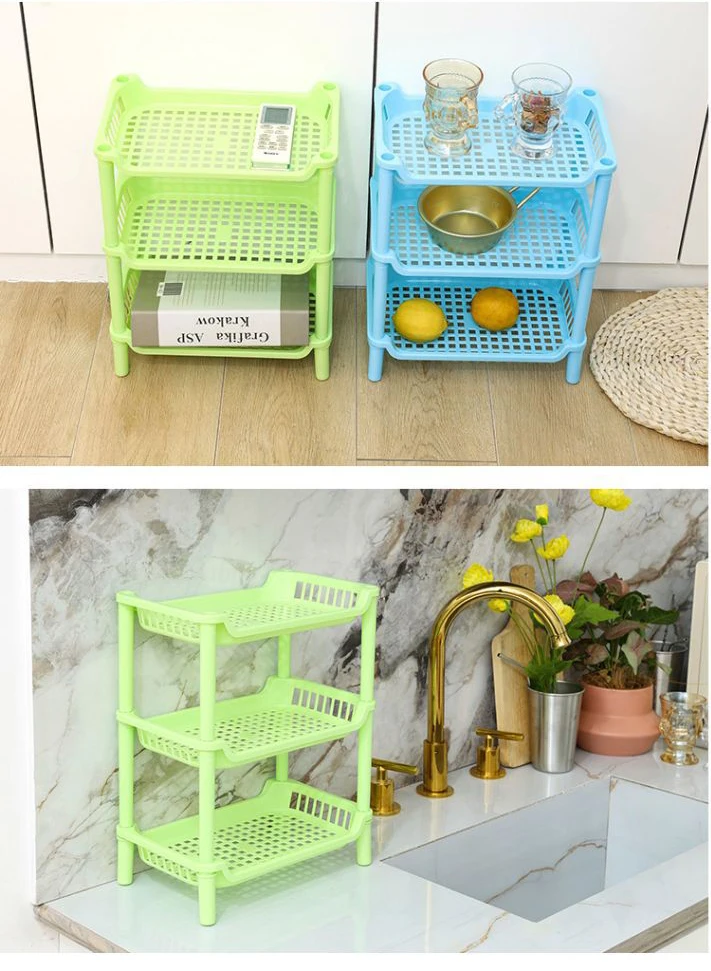 3-Layer Kitchen Bathroom Storage Basket Multi-Purpose Hook Tray Square Triangle Plastic Storage Rack Storage Holder