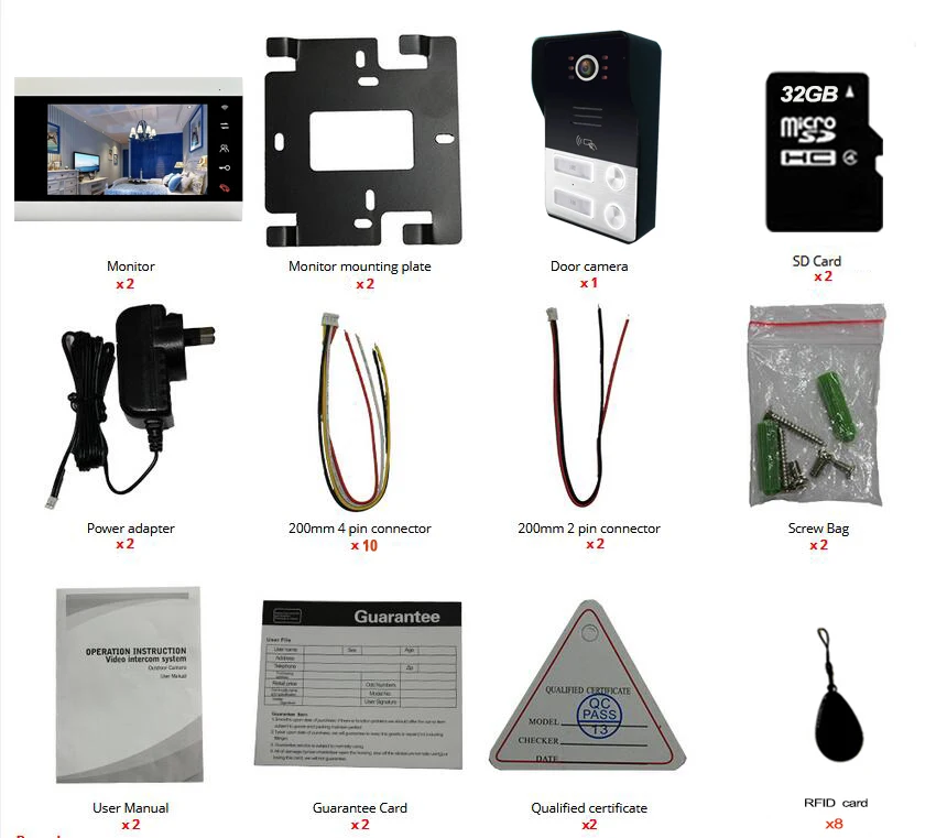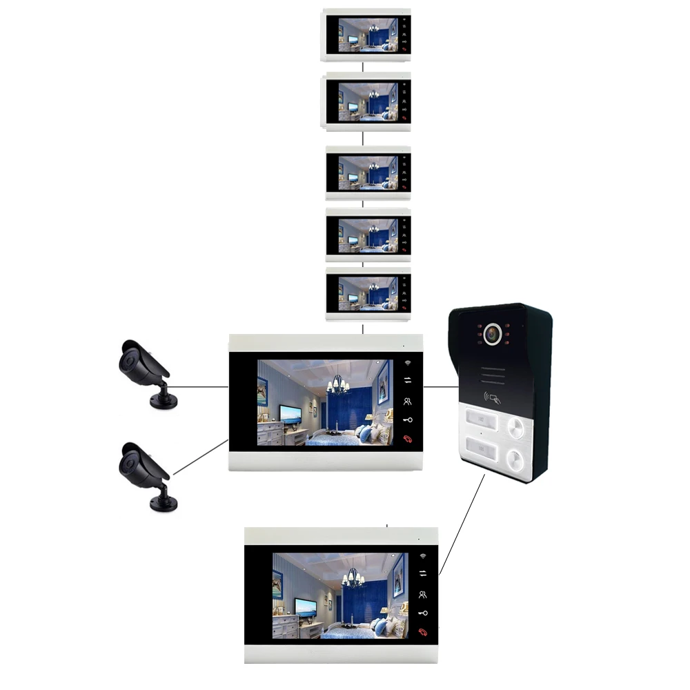 Поддержка нескольких систем:6 мониторов + 2 Дверных звонка + 2 камеры