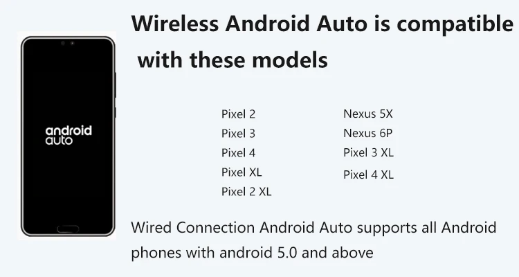 Полная Беспроводная/Проводная Автоматическая функциональность Android для совместимых моделей телефонов Android.
