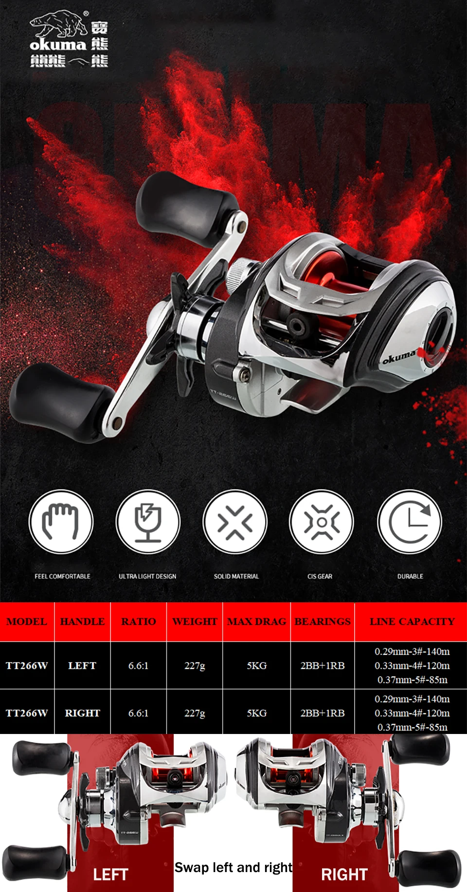 Низкопрофильные катушки Okuma Tormenta имеют магнитную систему управления, которая может уменьшить обратную реакцию во время литья и улучшить расстояние литья. Быстро устанавливаемый анти-обратный захватывает катушку в одном направлении для рок-твердых наборы крюков.