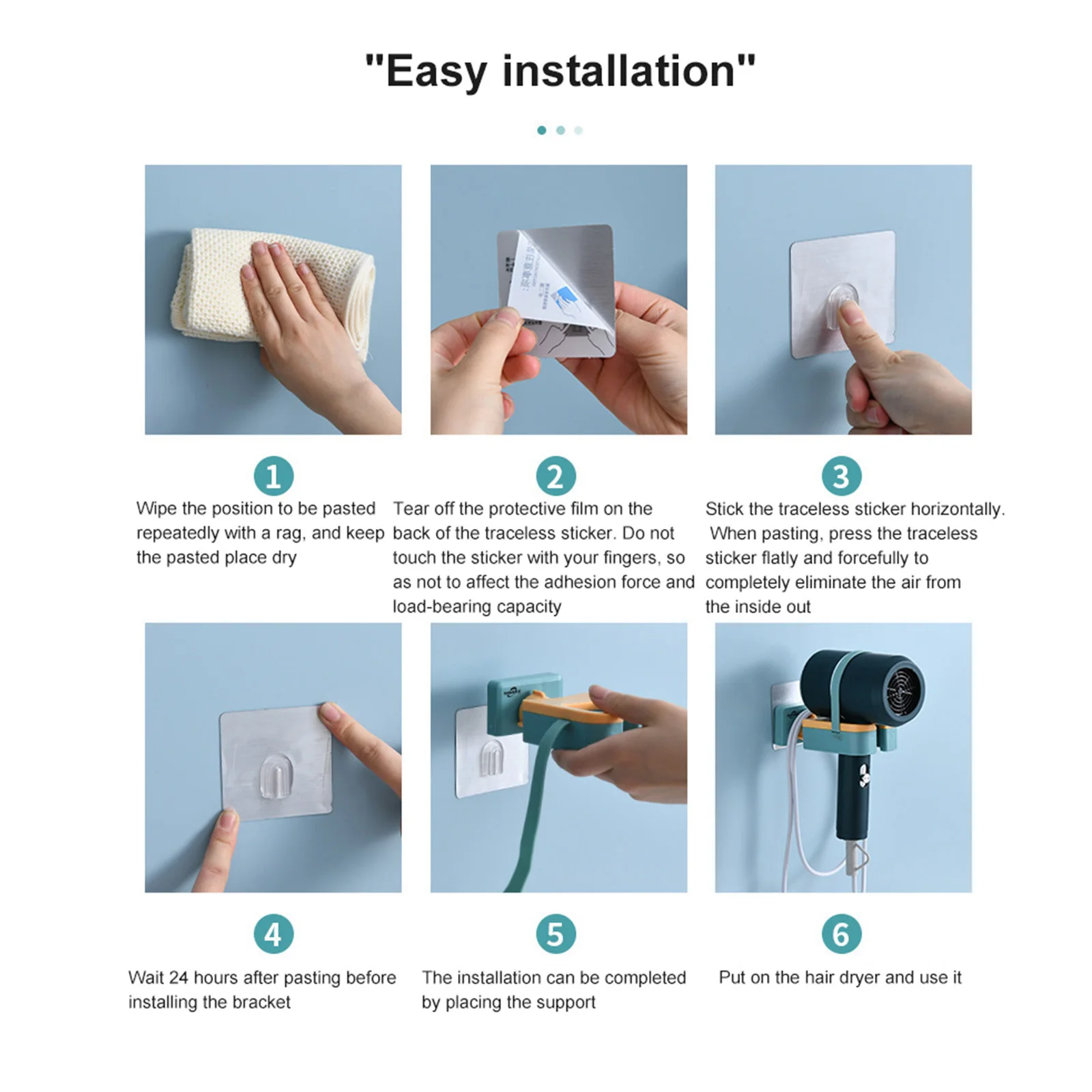 Кронштейн для фена снабжен фиксирующим ремнем из силикагеля, который мягкий и эластичный, может растягиваться по желанию и подходит для различных моделей.