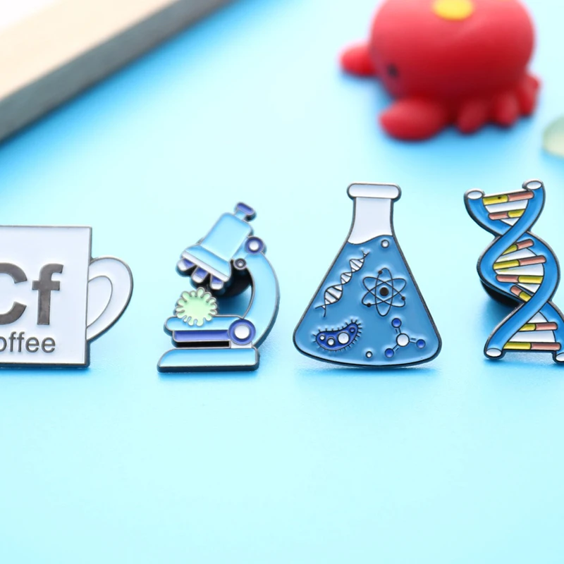 Научная эмалированная булавка для микроскопа, Бикер, химический молекулярный образец, биологический экспериментальный инструмент, металлические броши, Значки для рюкзаков, сумок Особенности: