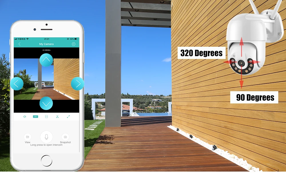Плавная сковорода на 320 градусов позволяет наслаждаться потрясающим видом на всю комнату. Управляйте движениями камеры. Наведитесь на свой телефон, чтобы увидеть все, что вы хотите увидеть.