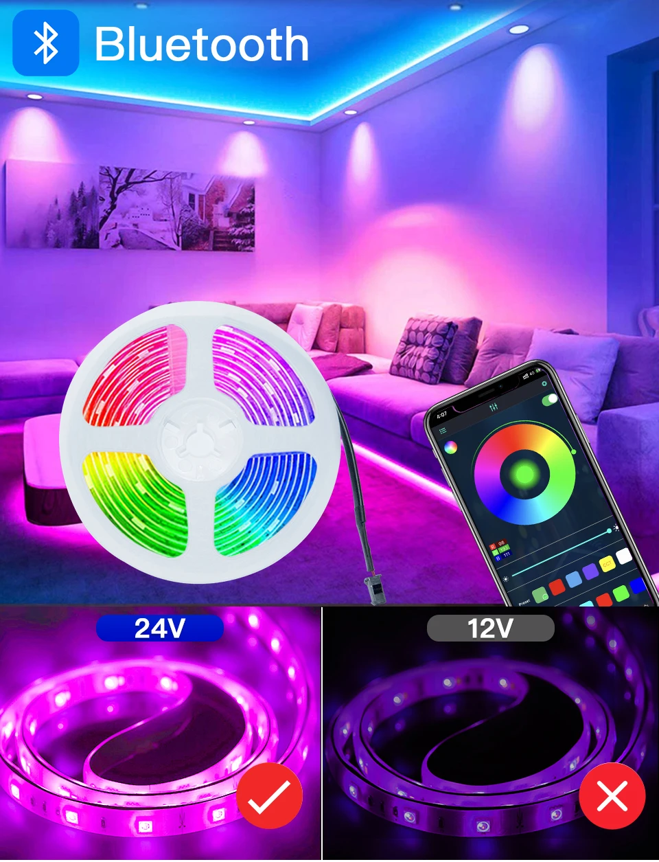 10 м-50 м светодиодный ленточный светильник s Bluetooth RGB Светодиодная лента диод 24 В SMD 5050 гирлянда светодиодный светильник для украшения комнаты светильник ing TV подсветка светильник пульт дистанционного управления