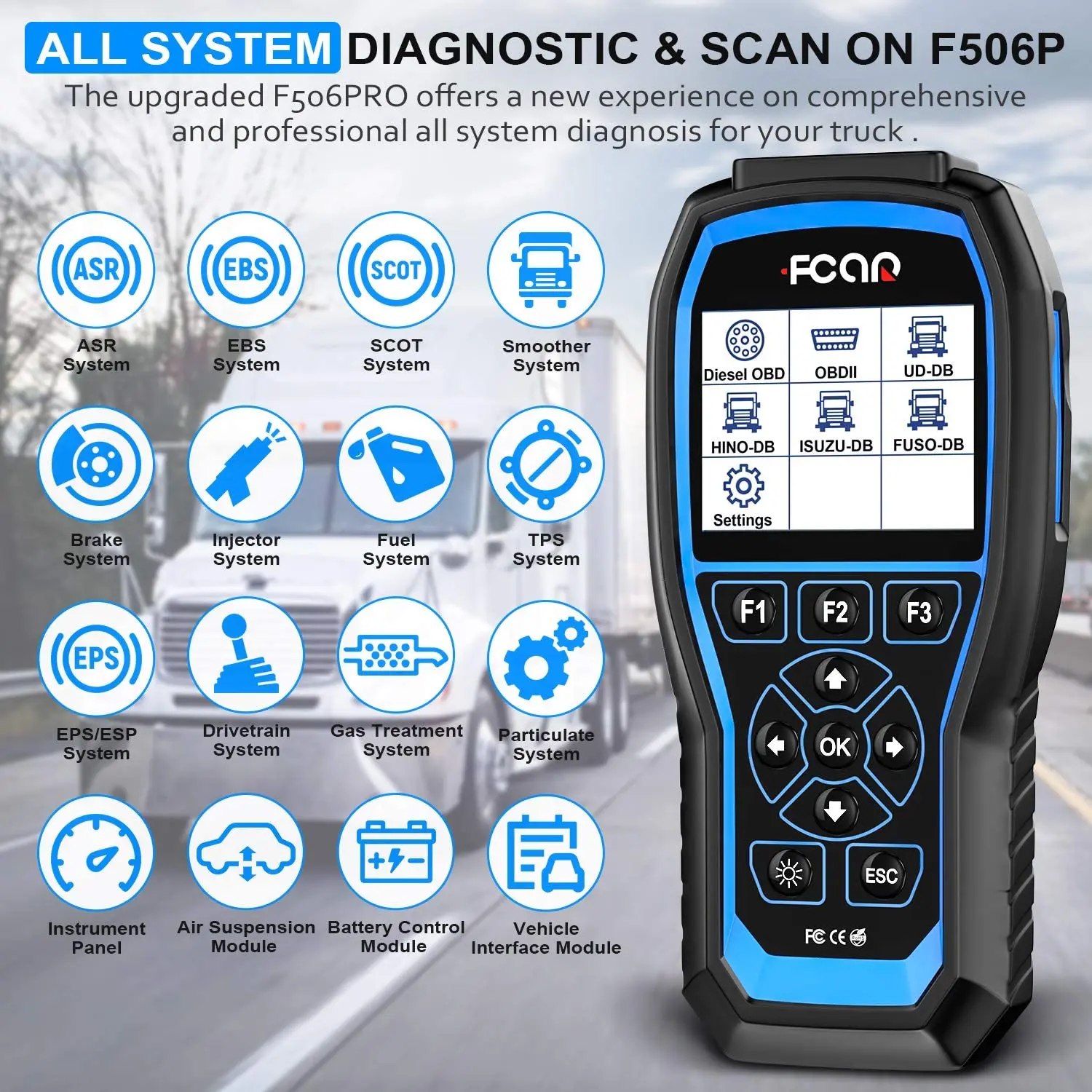 ➤【Широкий грузовой комбинезон 】-F506 PRO работает почти на грузовике с J1587 J1708 и J1939 plus OBD2 автомобильным покрытием