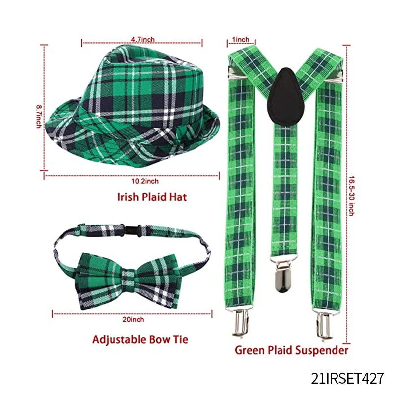1. Название: St. День Святого Патрика, набор аксессуаров, Ирландское праздничные аксессуары зеленый клетчатая шляпа ремень, галстук-бабочка, комплект из 3 предметов ирландское платье Для мужчин комплект детской одежды