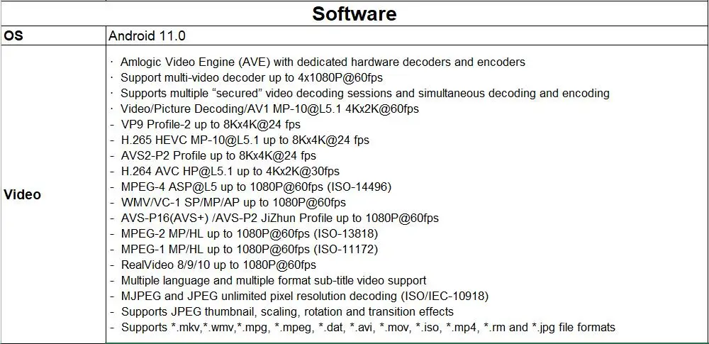 -Поддержка:AV1, H.265, 8K @ 24fps, 4K @ 60fps, HD 2,1, USB3.0;