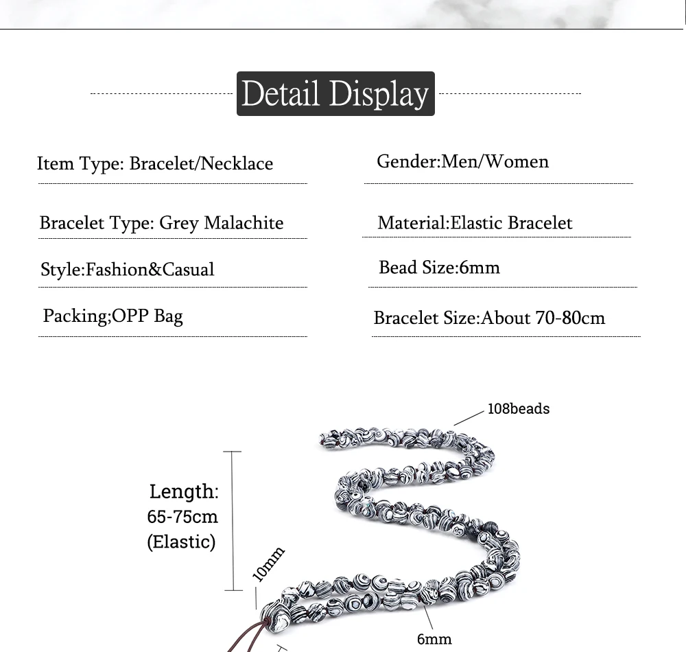 Шарм 6 мм серый Малахитовый камень многослойный кулон браслет Тибетский 108 с бусинами эластичный веревочный узел ожерелье женский браслет для йоги ювелирные изделия