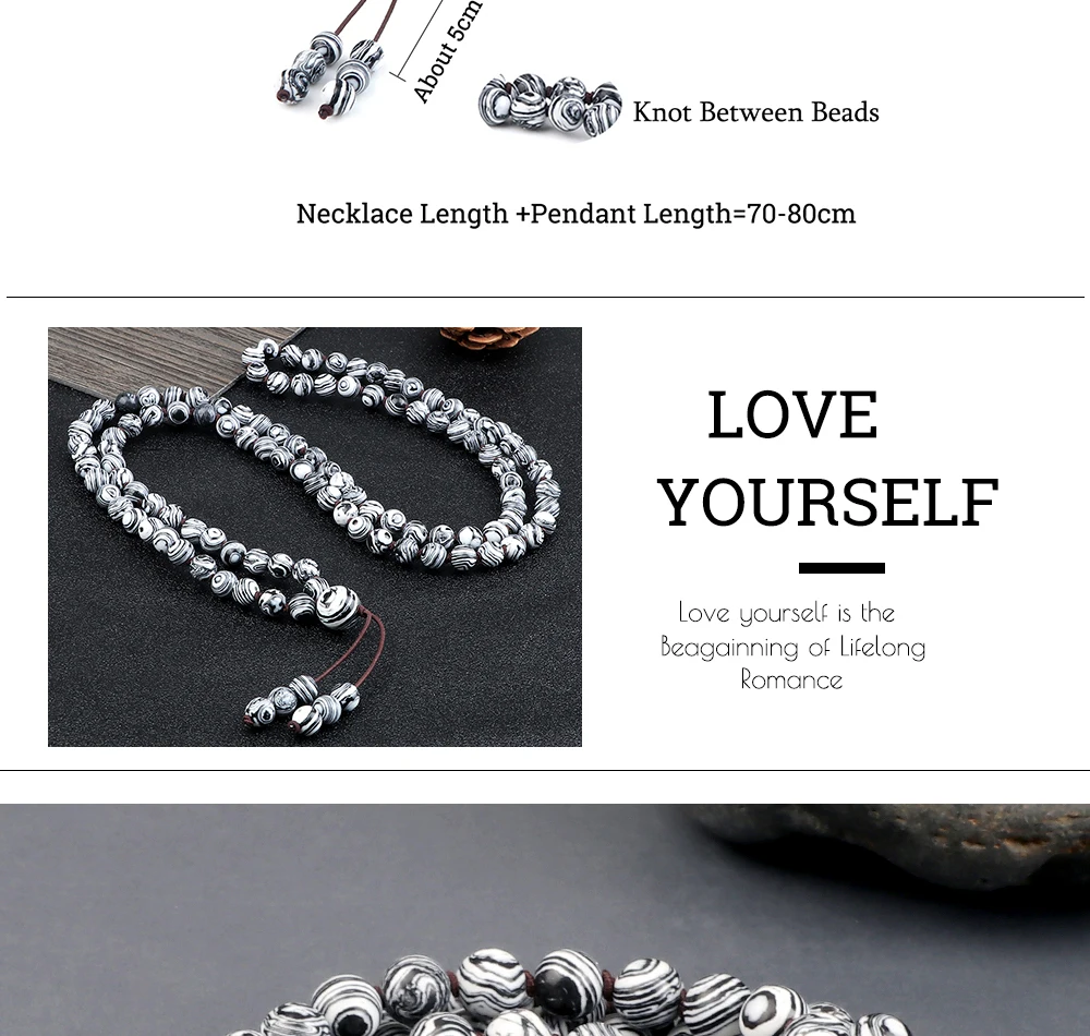 Браслет Charme 6 мм Gris Malachite Pierre Multicouche Pendentif Tibétain 108 Perles Élastique Corde Noeud Collier Femmes Yoga Bijoux