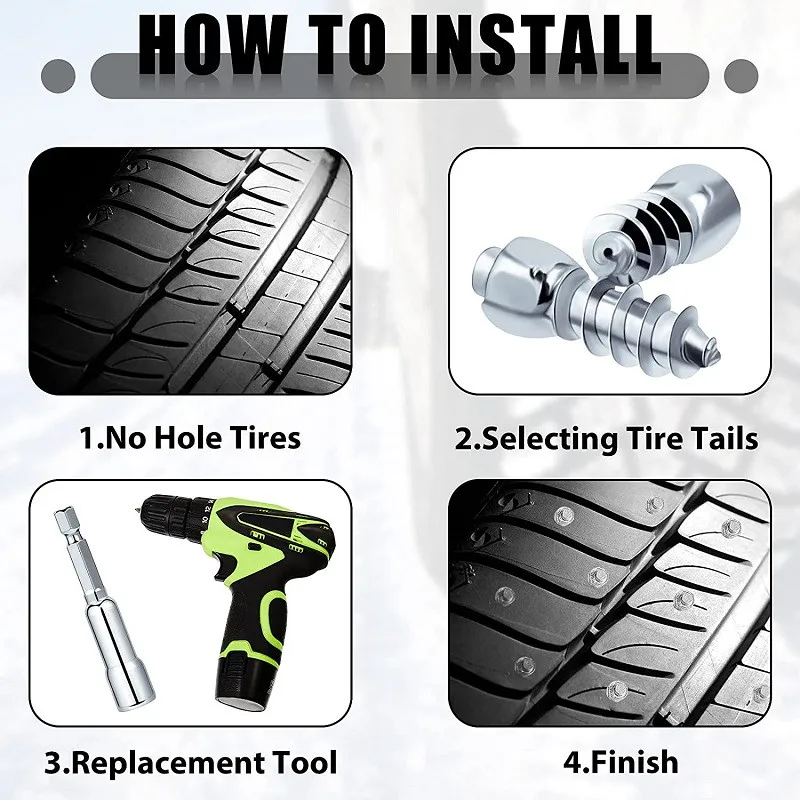 Легко устанавливается с помощью определенной дрели и хорошо сочетается с шинами вашего автомобиля. Просто положите