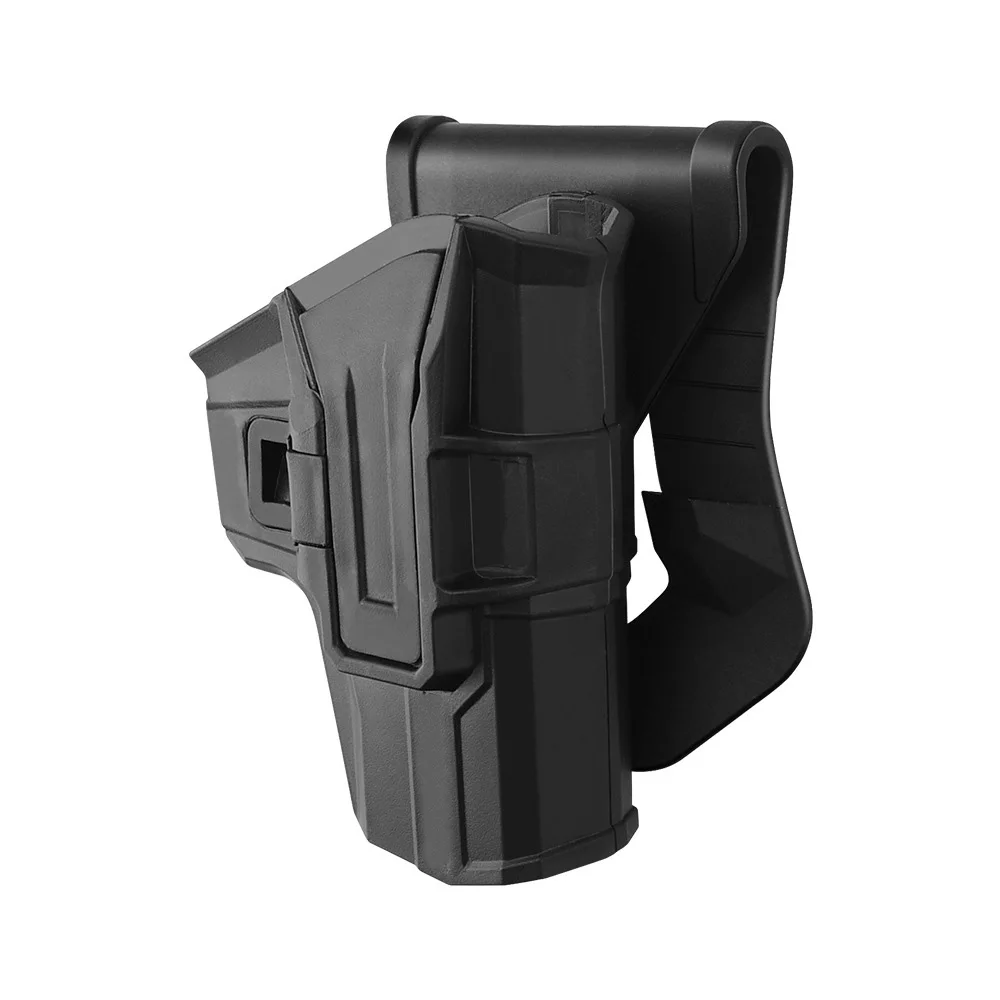 -- Level II holster utilitaize passive retention system - pull with one quick stright moution natural for the owner but still prevents theft and allows to even do parkour & a release button.