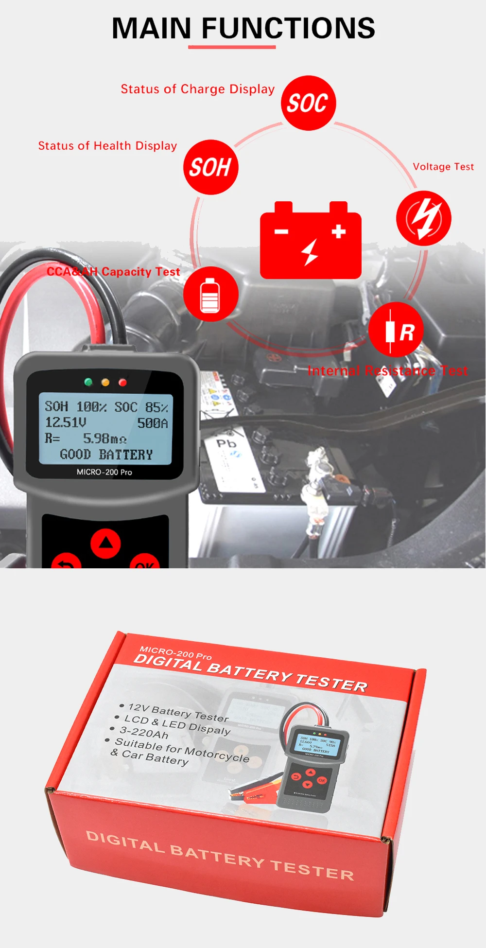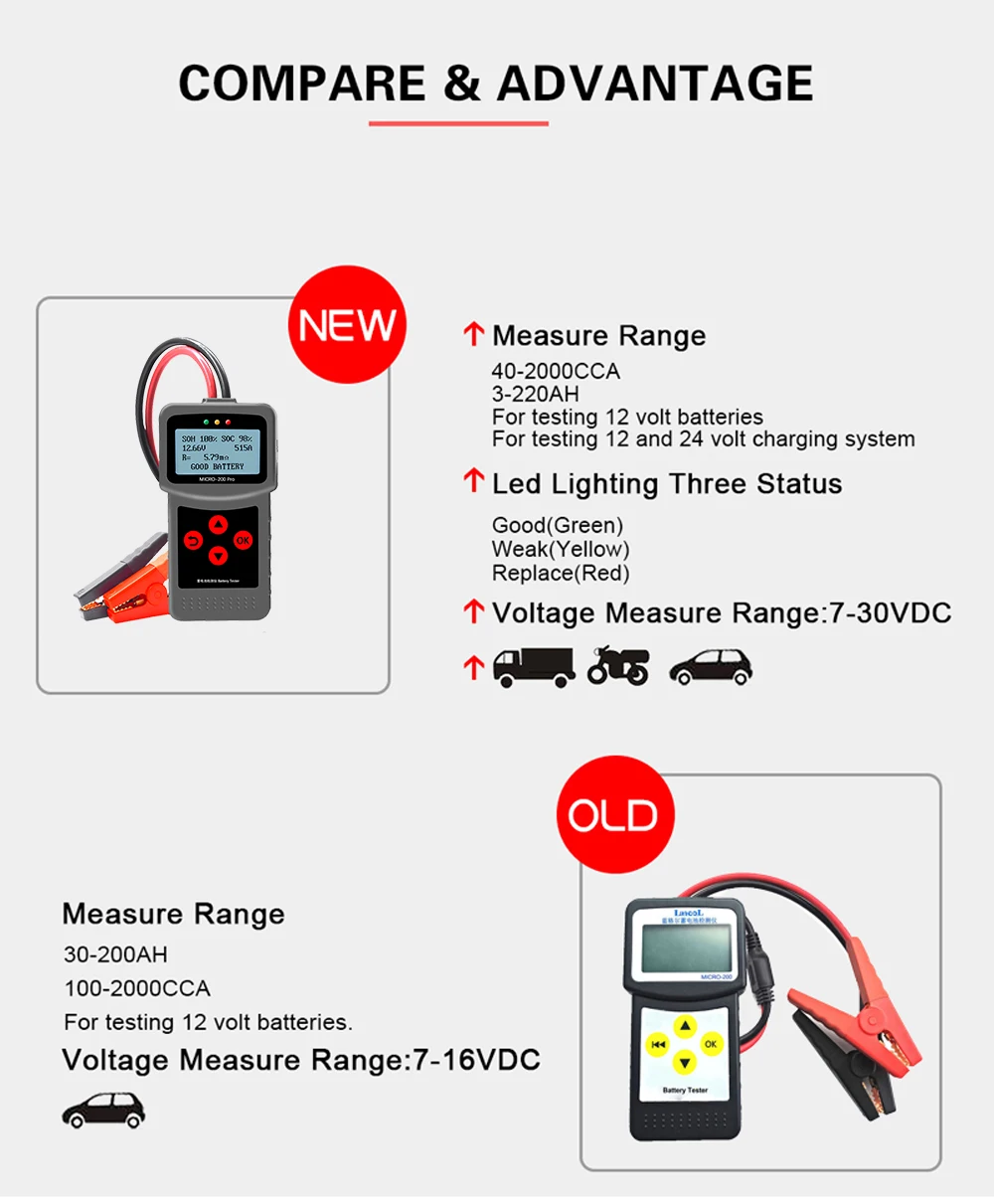 MICRO-200PRO 12V 24V 40-2000CCA Ёмкость Цифровой walkie talkie автомобильное Системы Инструмент Анализатор Грузовик Мотоцикл помощи при парковке Авто Батарея тестер