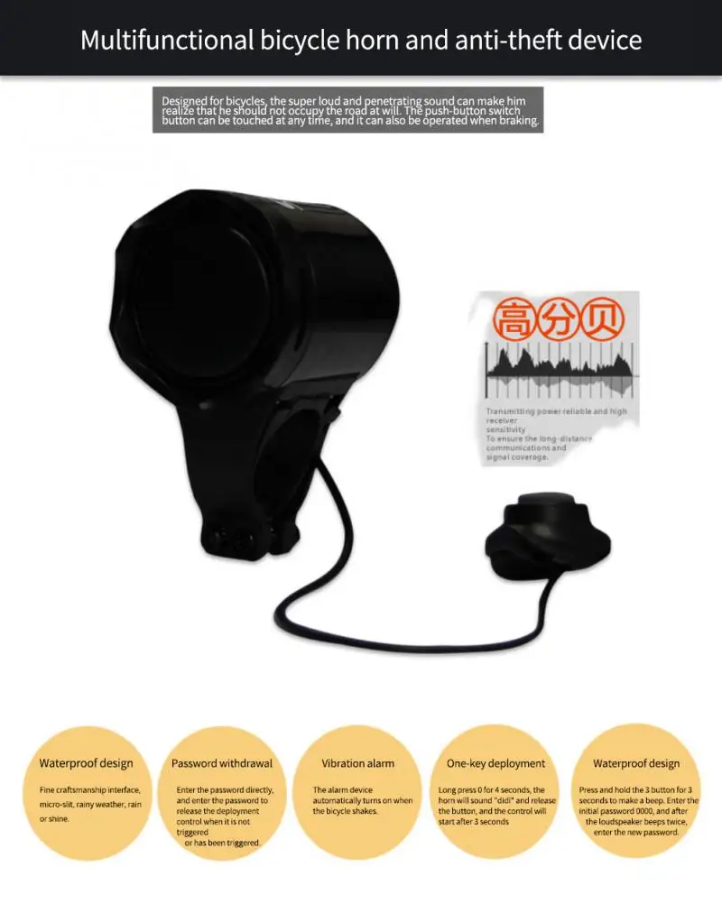 Велосипедный сиферный сигнализатор, велосипедный рожок, большое децибел, противоугонное устройство, велосипедный пароль, сигнализация, уличная безопасность, аксессуары для велоспорта