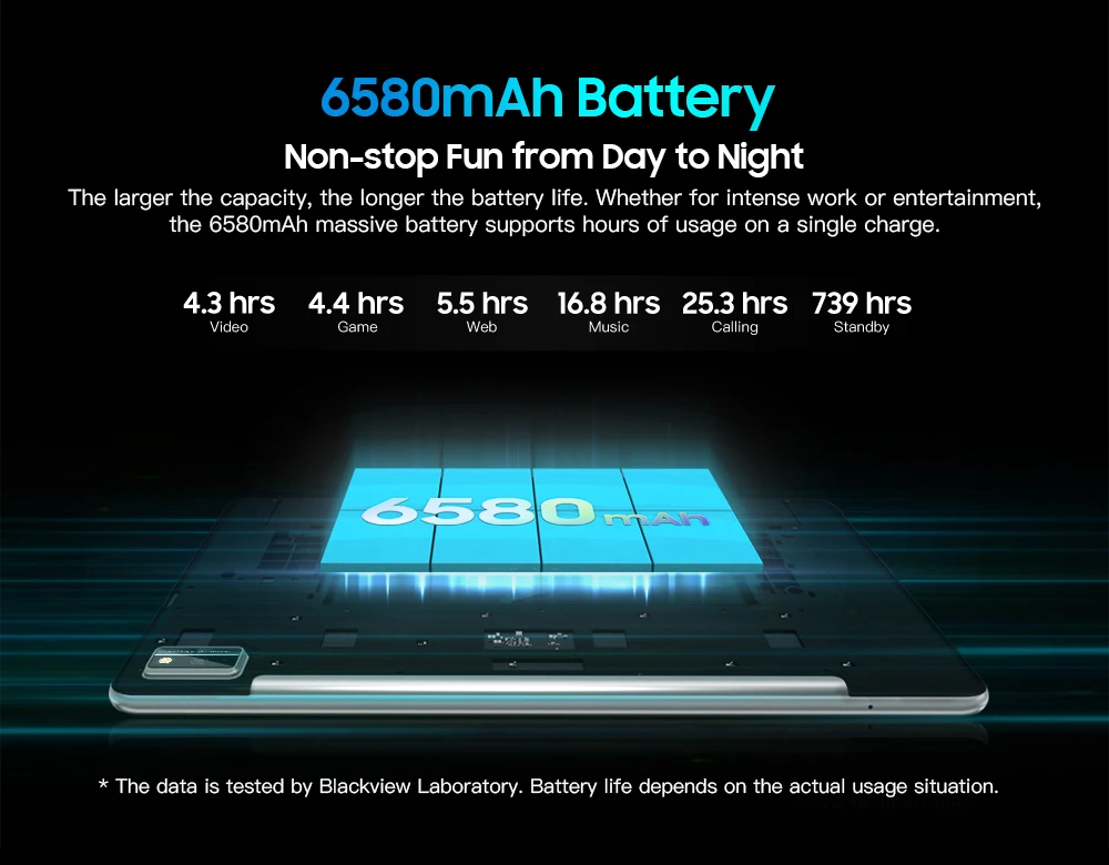 5. Аккумулятор большой емкости 6580 мАч, более длительное время работы в режиме ожидания.