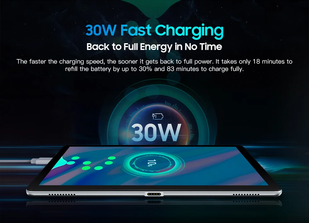 6. Мощность зарядного устройства 9 В/2 А, поддержка быстрой зарядки 30 Вт.