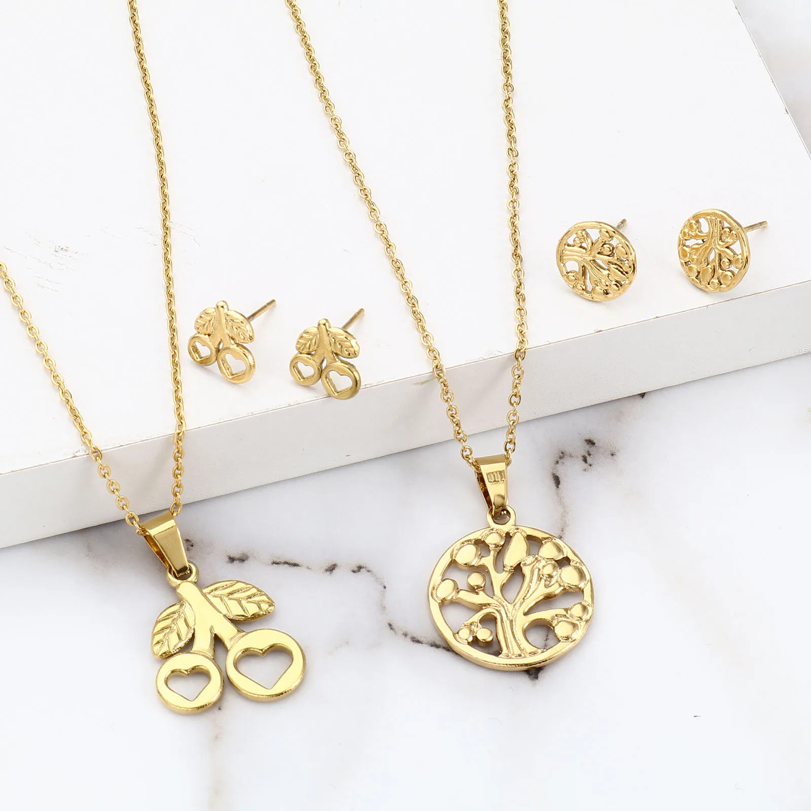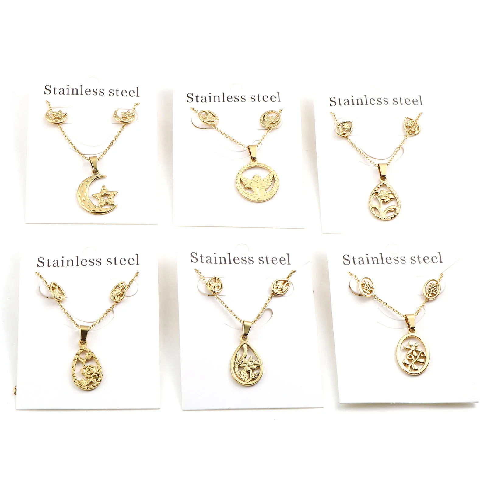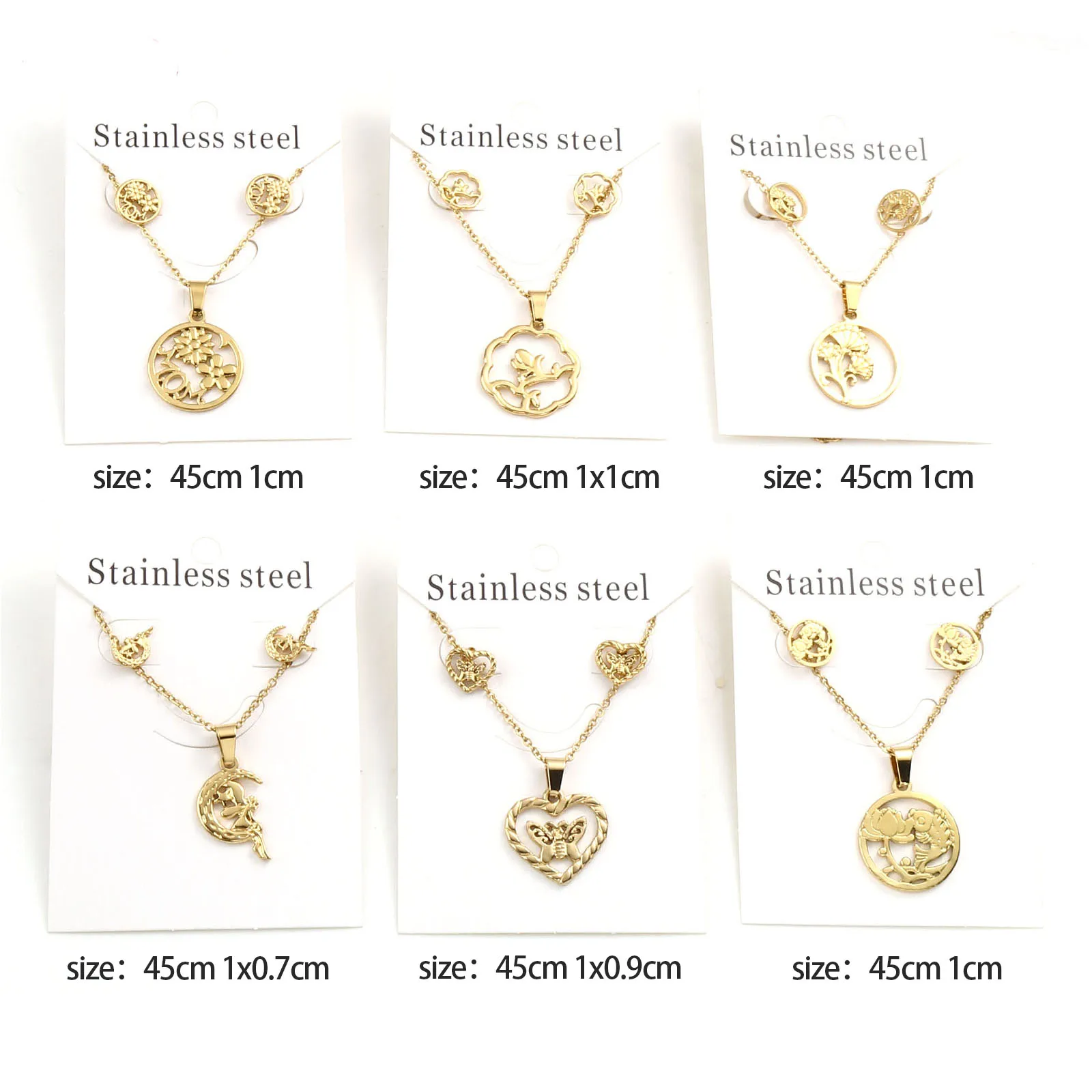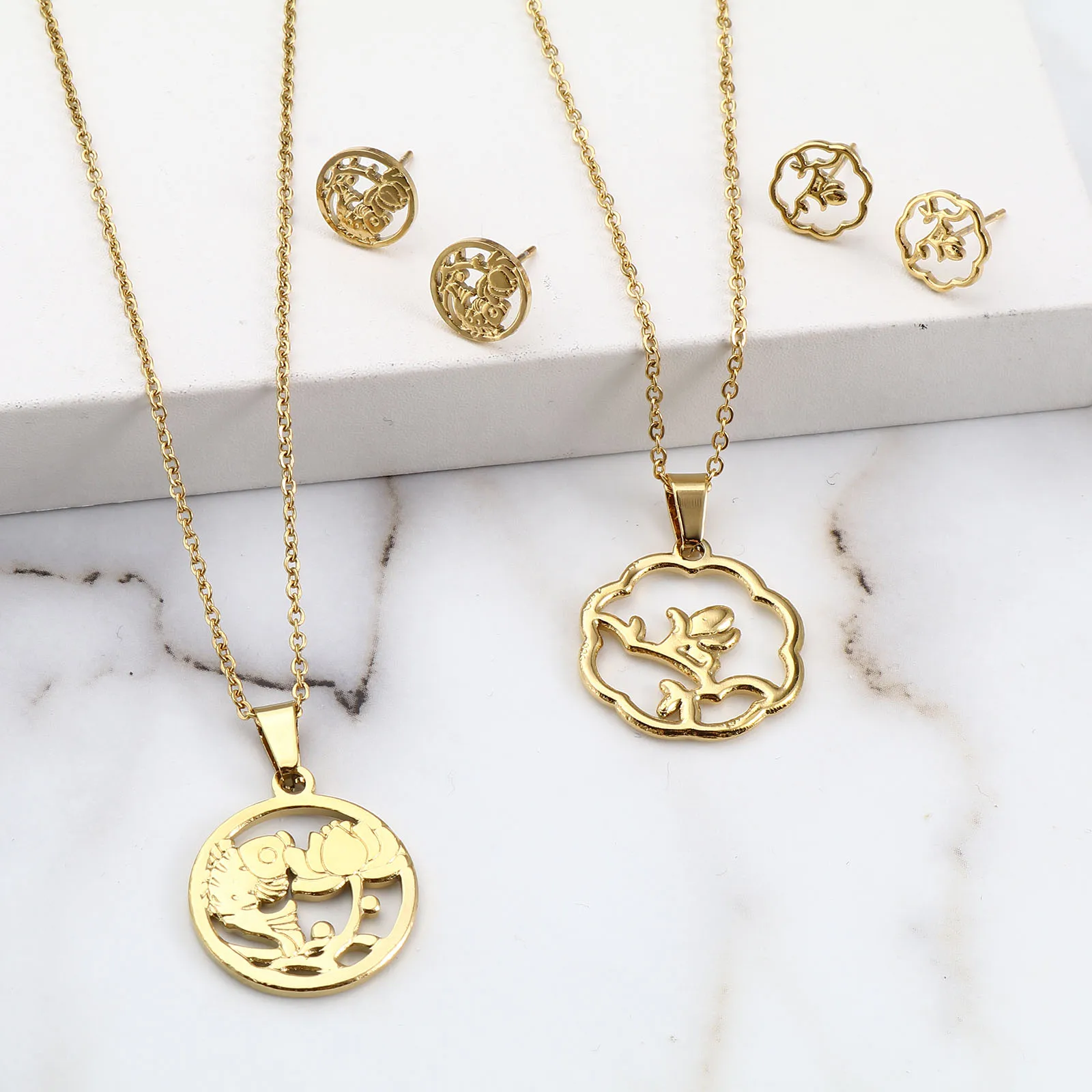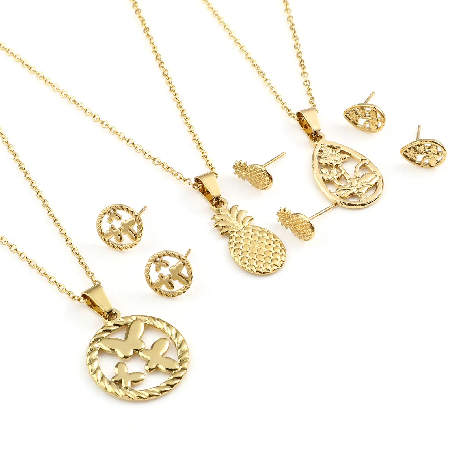Животные Растения Цветы Бабочка Кулон Ожерелье Серьги Комплекты Ювелирных Изделий Из Нержавеющей Стали Для Модных Женщин Золотой Цвет Набор Новинка