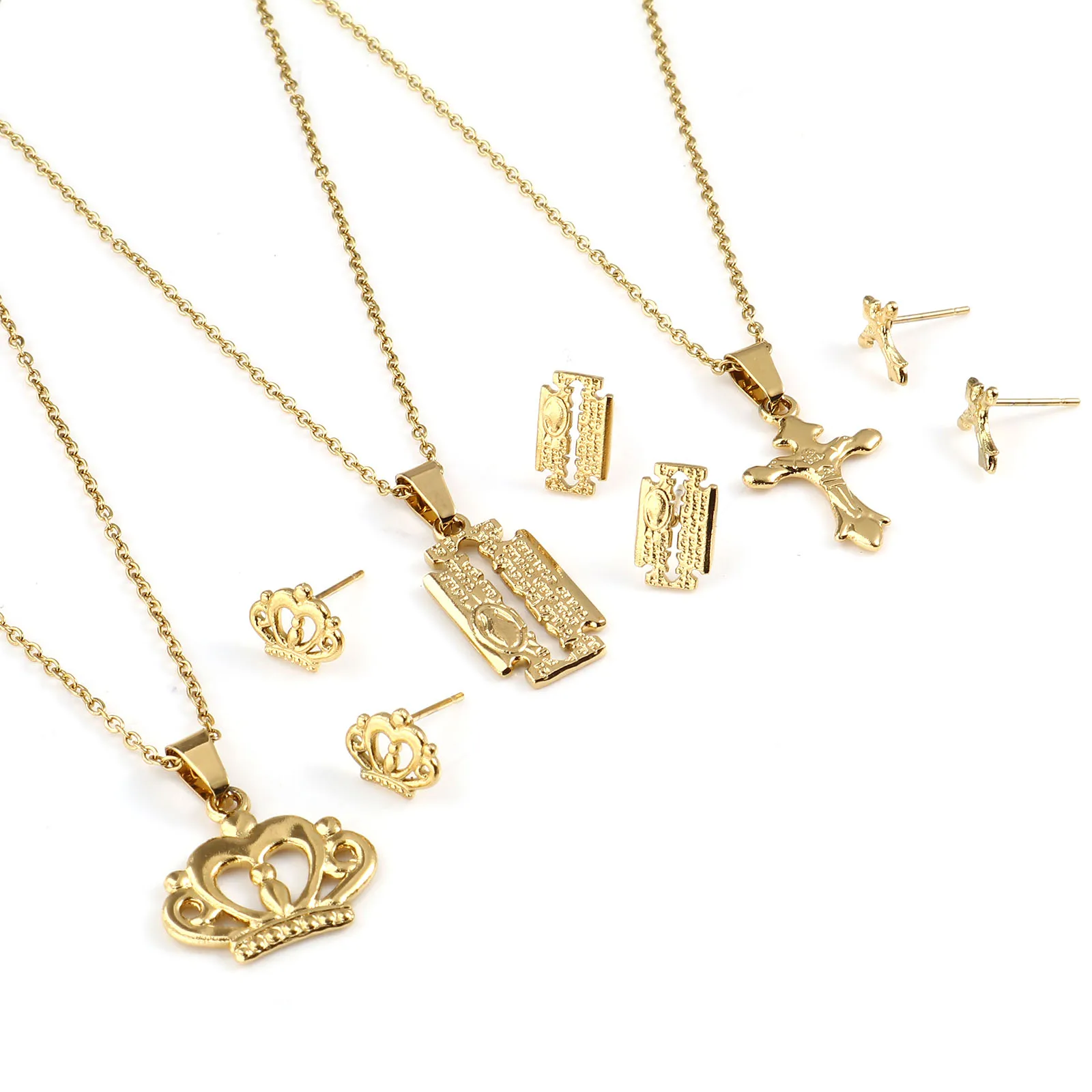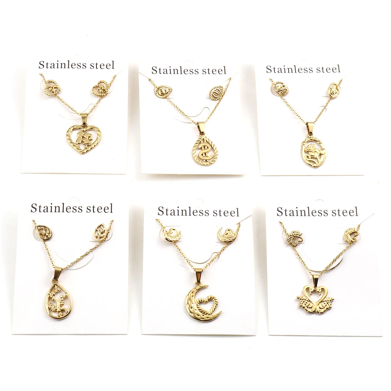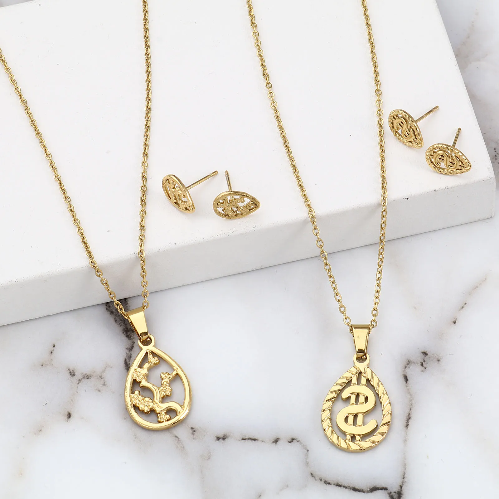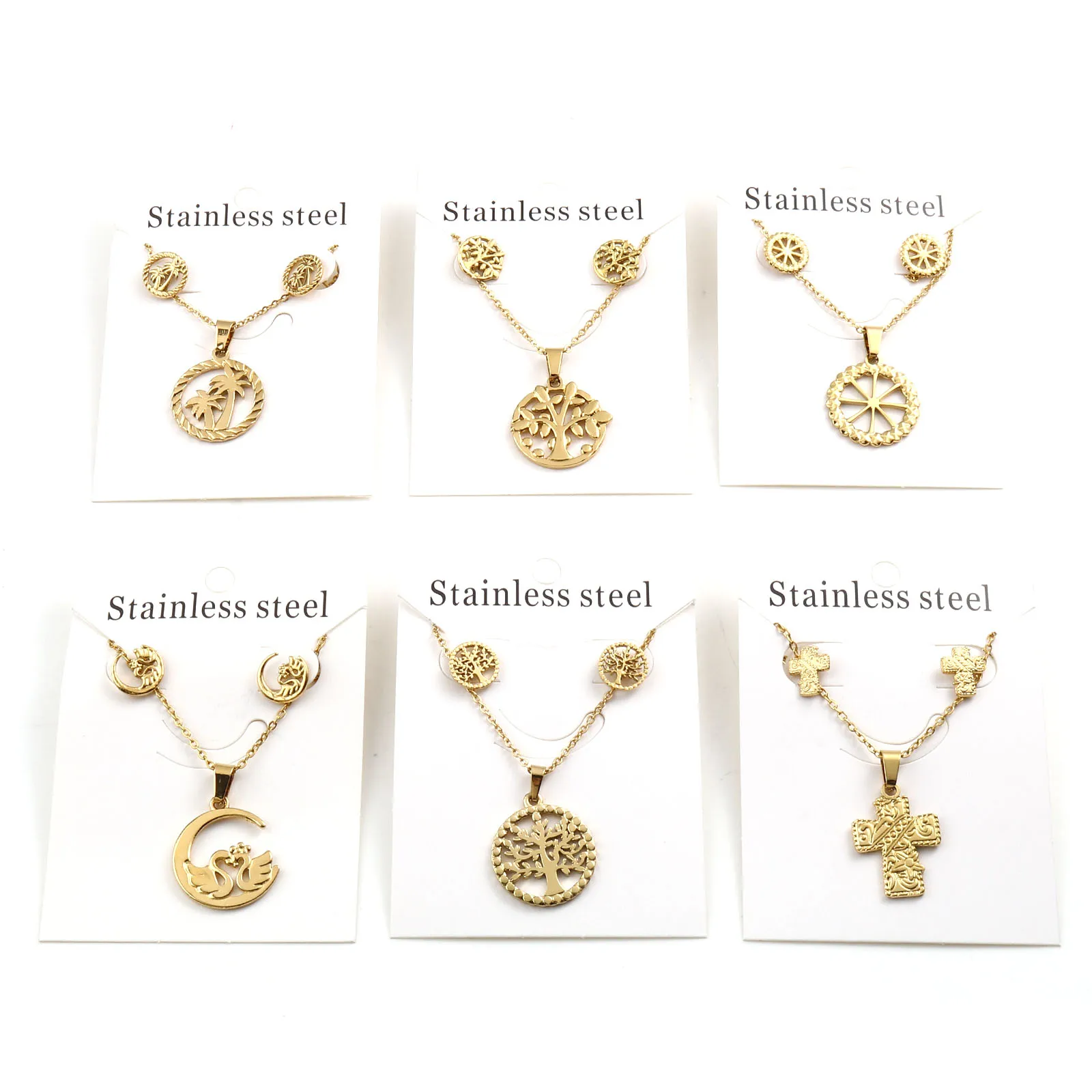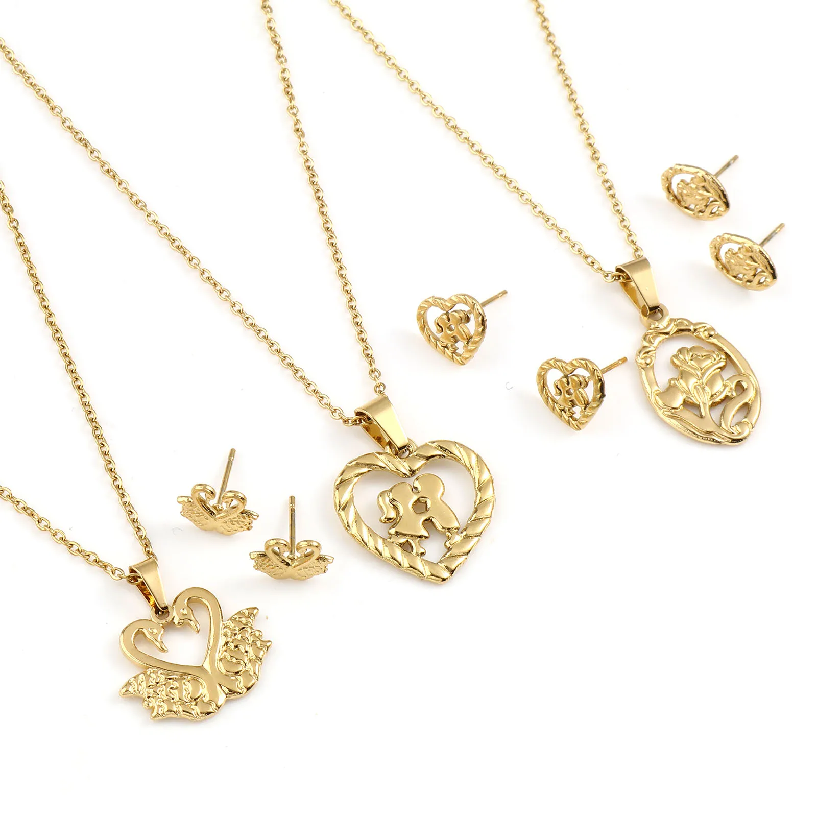Животные Растения Цветы Бабочка Кулон Ожерелье Серьги Комплекты Ювелирных Изделий Из Нержавеющей Стали Для Модных Женщин Золотой Цвет Набор Новинка