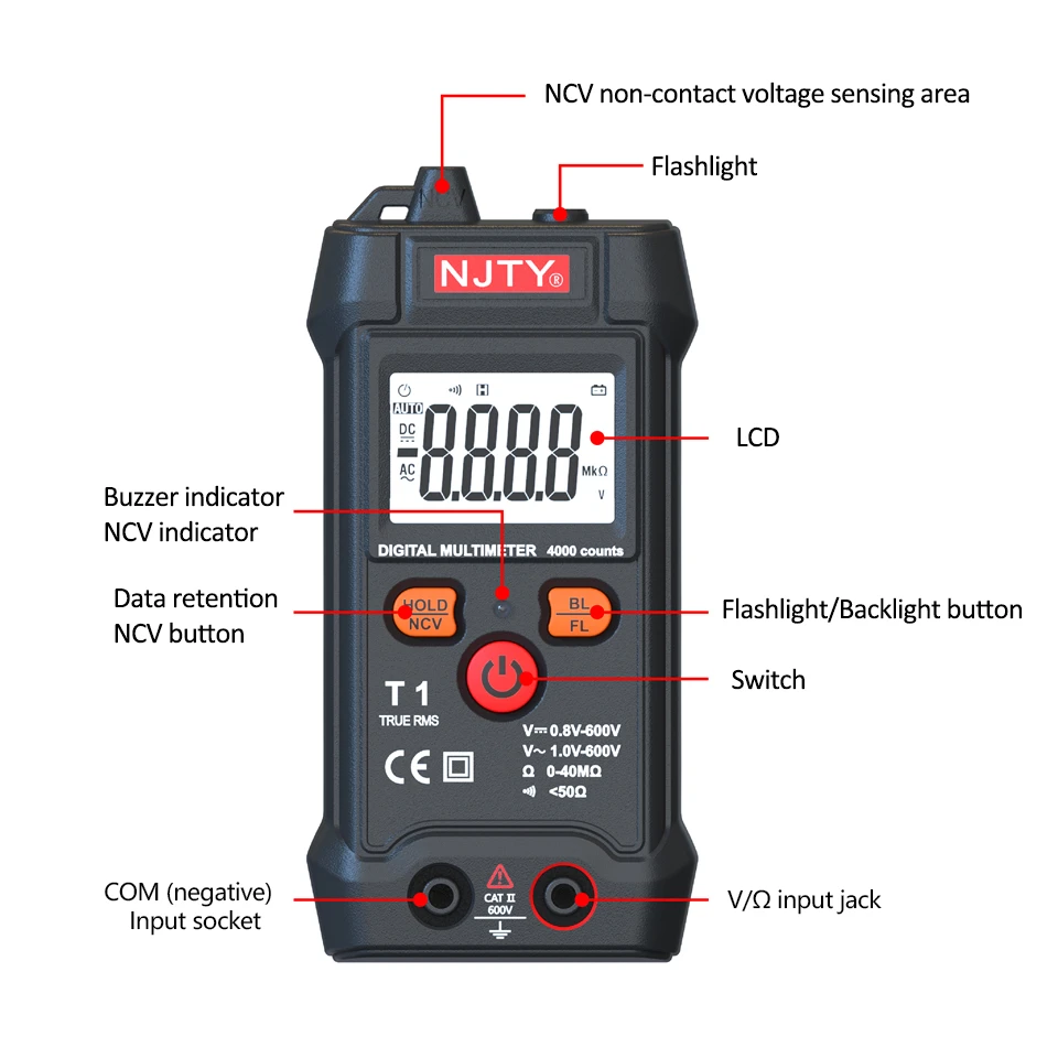 Мультиметр NJTY T1:1. Небольшой размер и легко держать, удобно носить с собой.