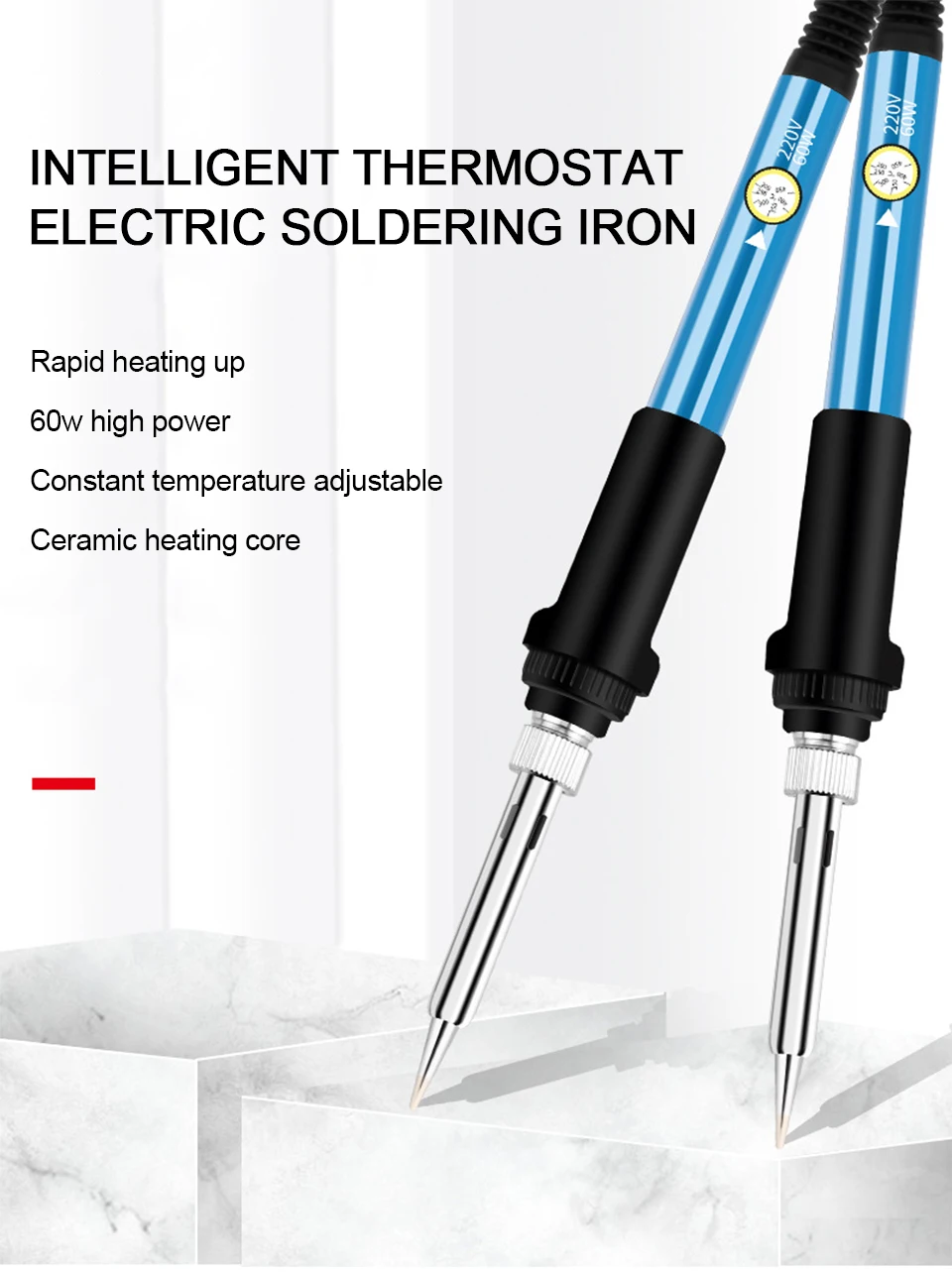 2. Паяльники с регулируемой температурой:200-450 ° C (на электронном паяльнике имеется ручка-колесо для регулировки температуры) идеально подходит для хобби, комплектов, радиоприемников и электроники. Железные наконечники и конструкция из нержавеющей стали обеспечивают более длительный срок службы.
