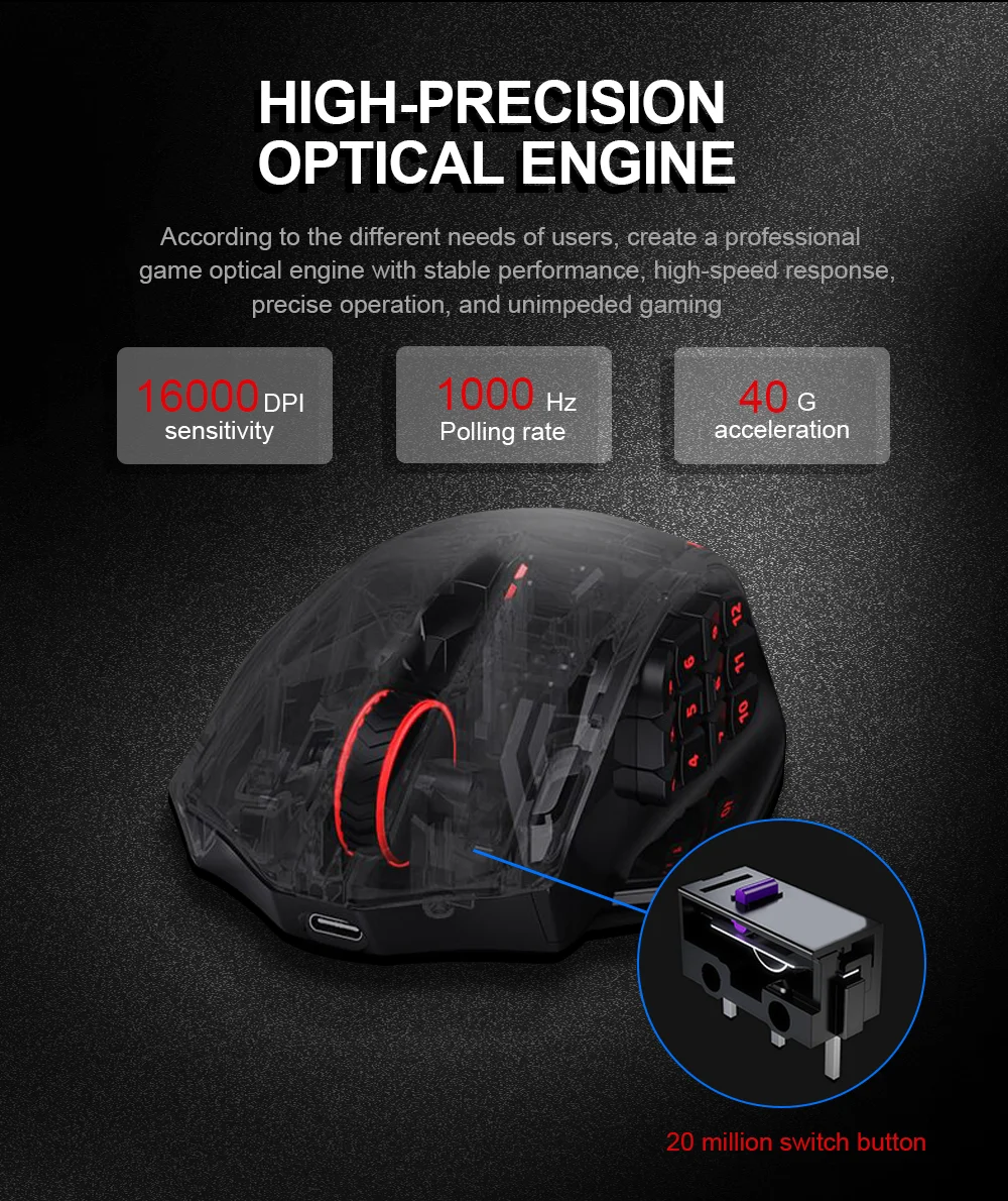 5 DPI специально разработан для электронных видов спорта-оснащен 5 встроенными уровнями DPI (1000/2000/4000/8000/16000), что позволяет легко переключаться между различными потребностями. Персонализированный DPI ± 100 может удовлетворить ваши уникальные потребности и сократить время использования.