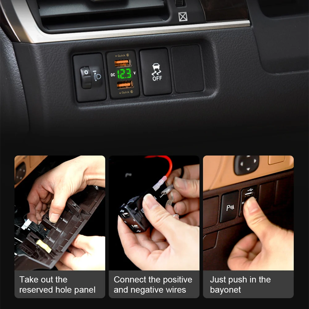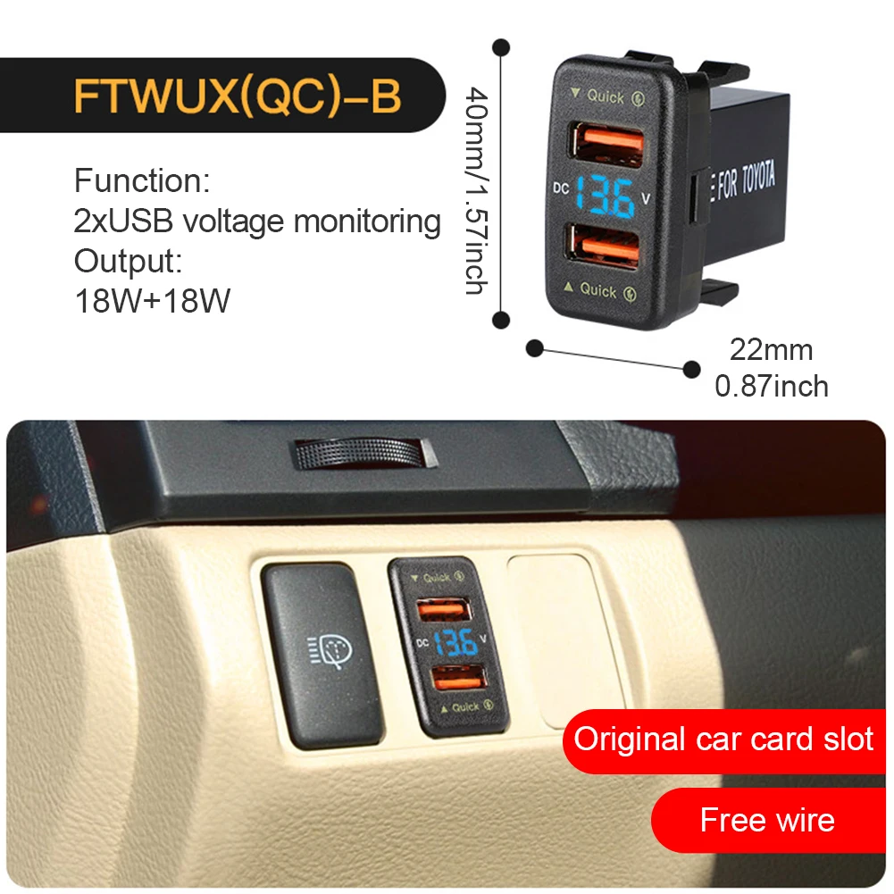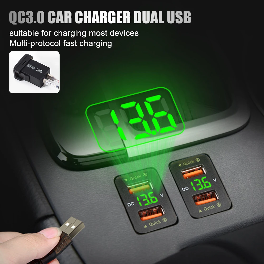 *1. Fast Charging car charger socket with 36W maximum total output, dual USB ports.