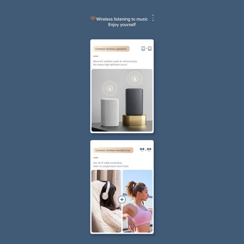 Два набора подключенных наушников, поддержка одного для двух функций, два беспроводных гарнитуры или колонки соединены одновременно.