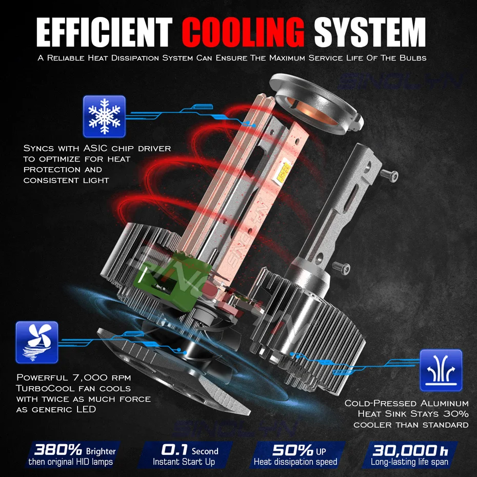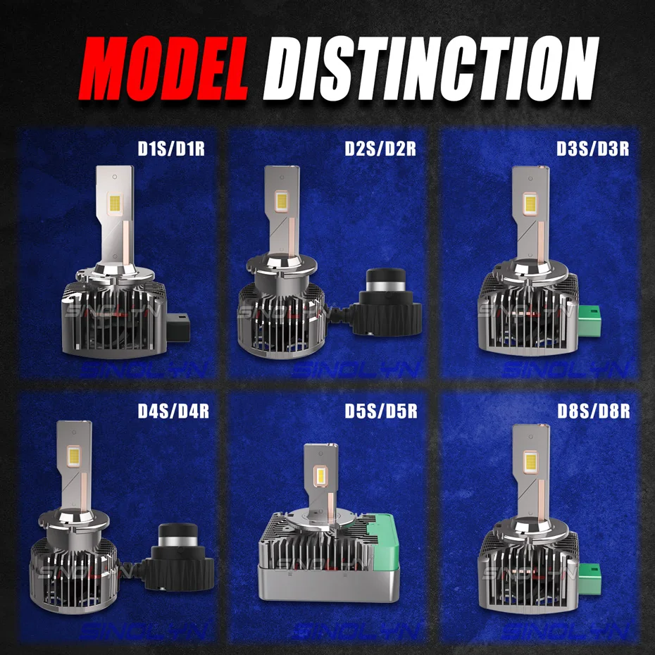 Светодиодный фонарь Sinolyn D1S D2S D2R D3S D4S D4R D5S D8S, Автомобильный светодиодный светильник для замены оригинальной лампы HID Canbus