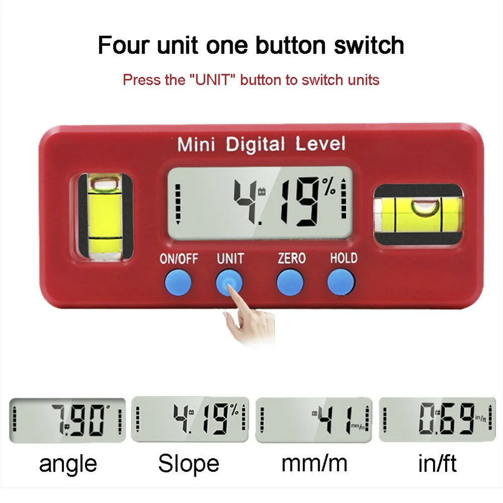 Цифровой горизонтальный Инклинометр: подходит для измерения угла в автомобильной промышленности, деревообработке, строительстве, машиностроении, строительстве и других отраслях промышленности.