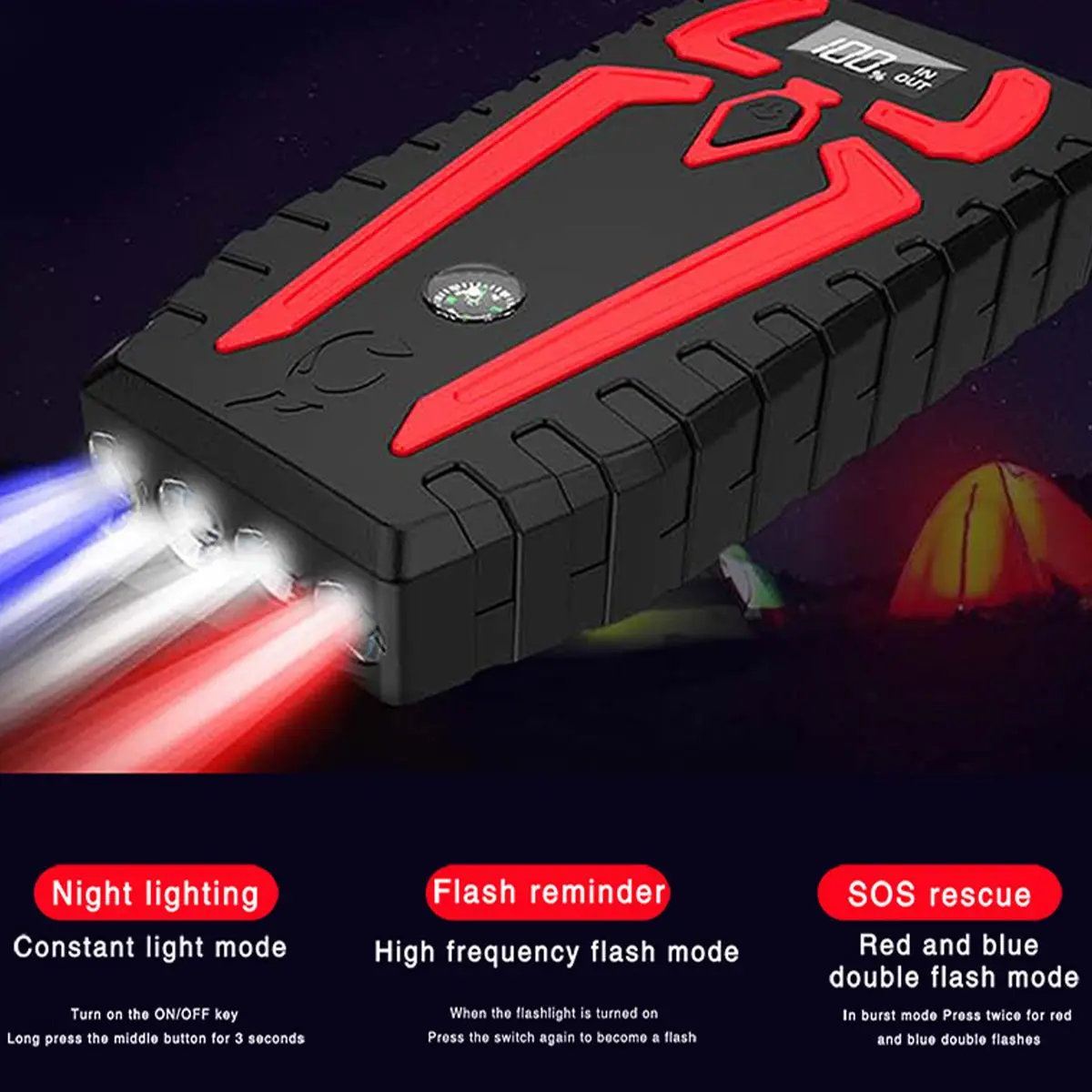 -Может использоваться как светильник вспышки, с аварийным режимом SOS, супер яркий светильник.