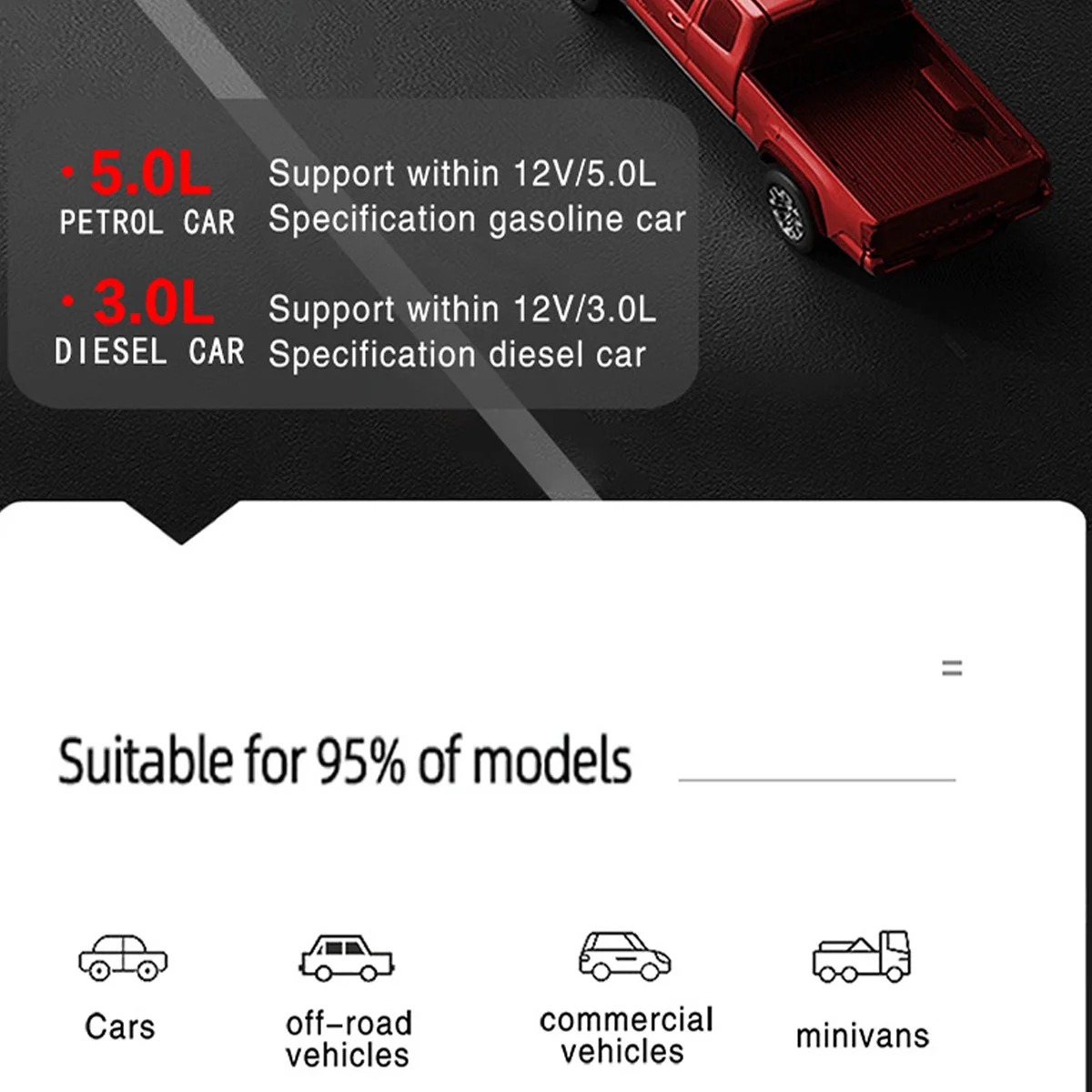-Можно запускать как дизельные, так и бензиновые транспортные средства.