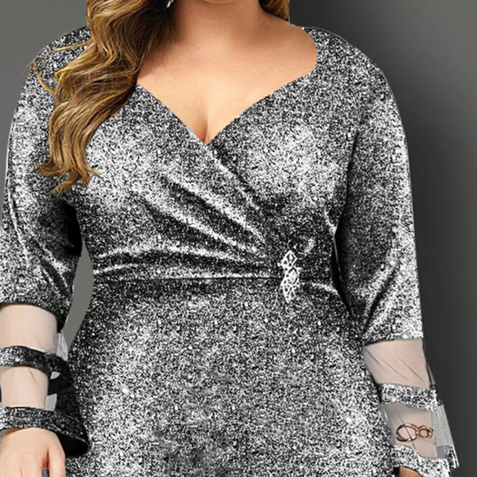 Сетчатый лоскутный дизайн делает это официальное платье прозрачным и более модным, и это позволяет вам быть сексуальным и более привлекательным. Кроме того, дизайн расклешенного рукава красивый и обеспечивает вам красивый и элегантный внешний вид.