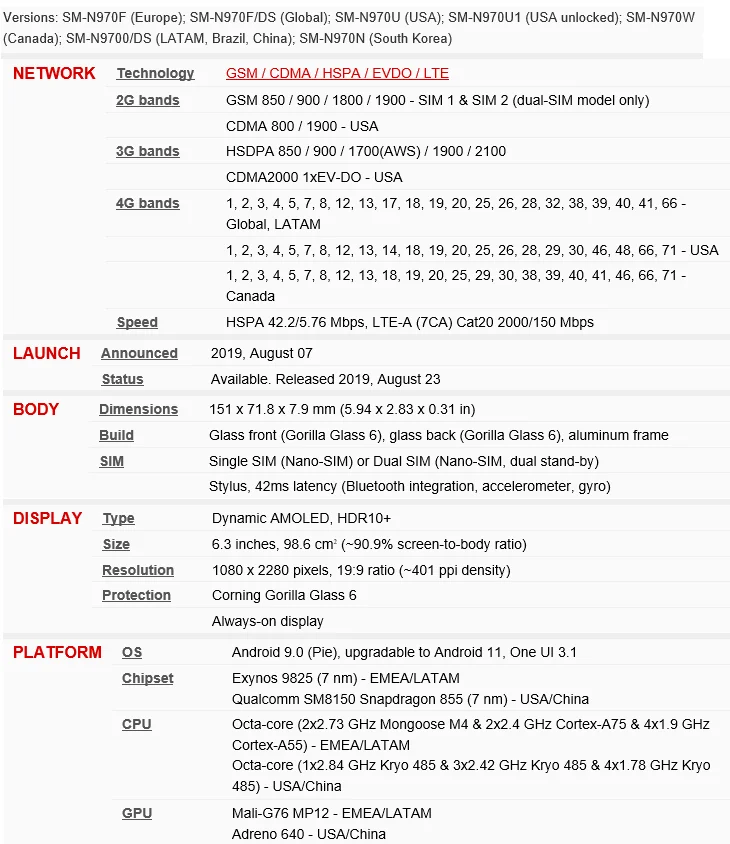 1 * оригинальный телефон Samsung Galaxy NOTE10 N970U 256 ГБ (разблокирован)